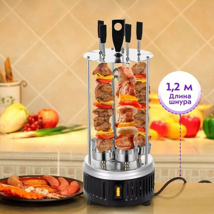 Электрошашлычница Kitfort KT-1406, 900 Вт, 5 шампуров, серебристо-чёрная интересное: