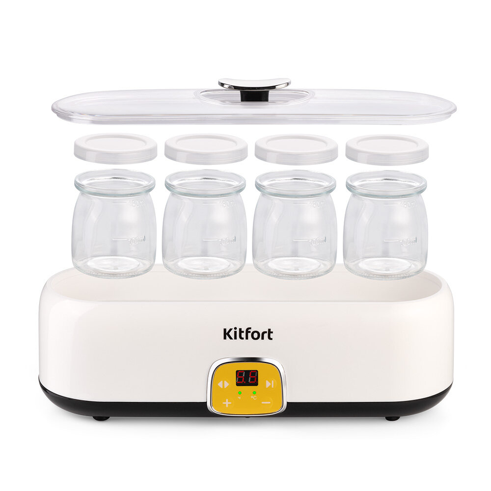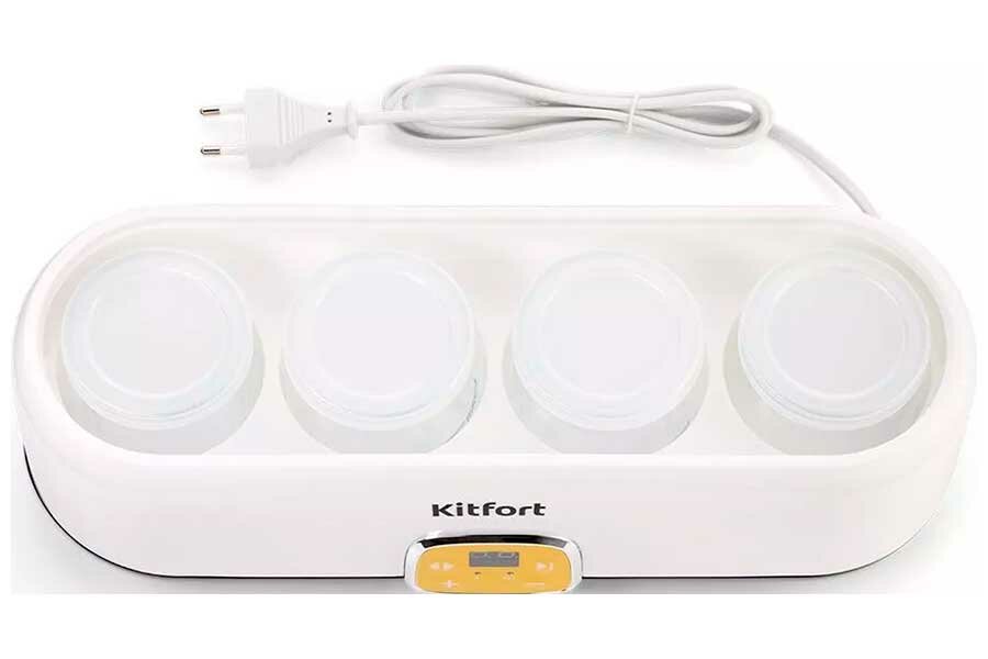 Йогуртница Kitfort КТ-6038, 20 Вт, 200 мл, 4 ёмкости, стекло, белая интересное: