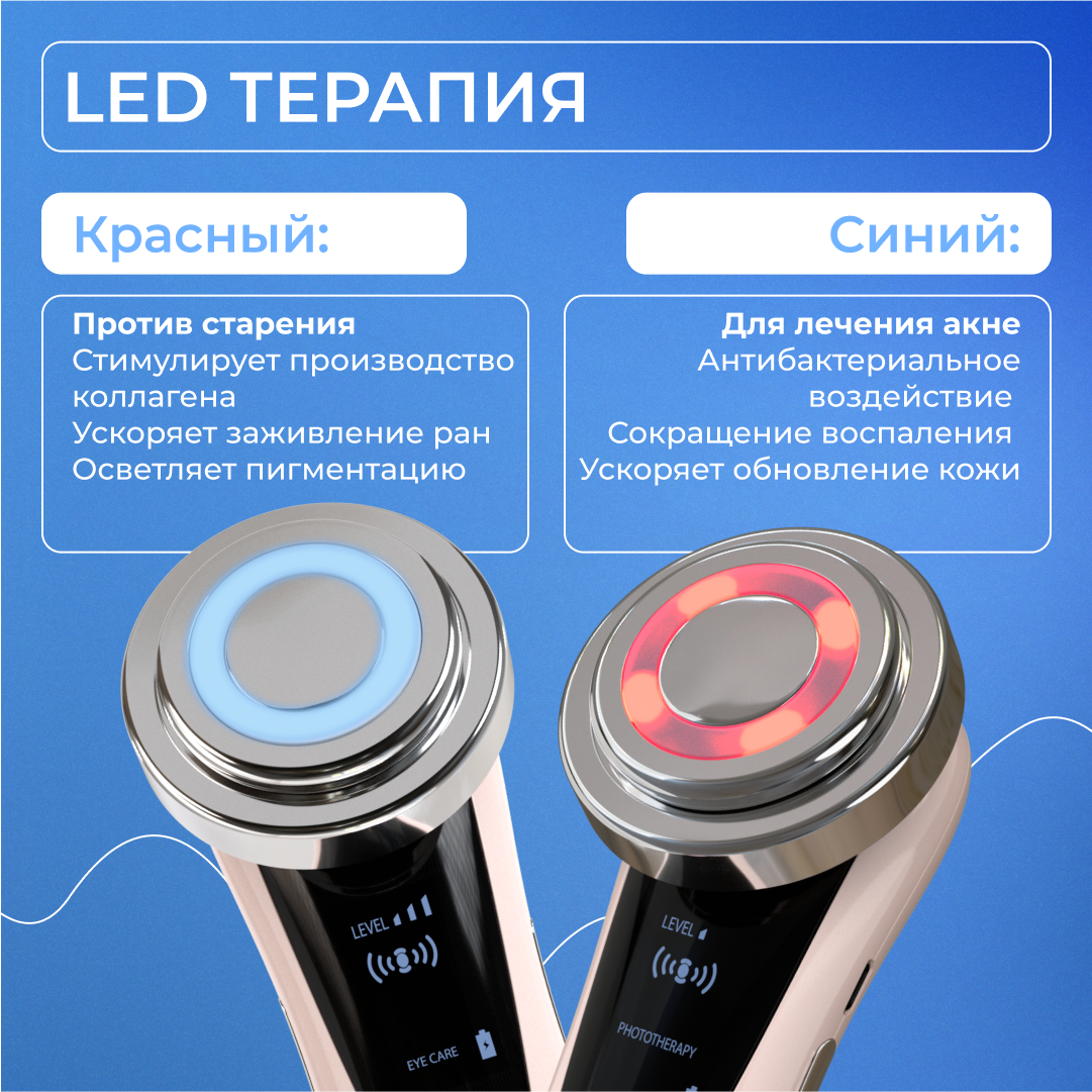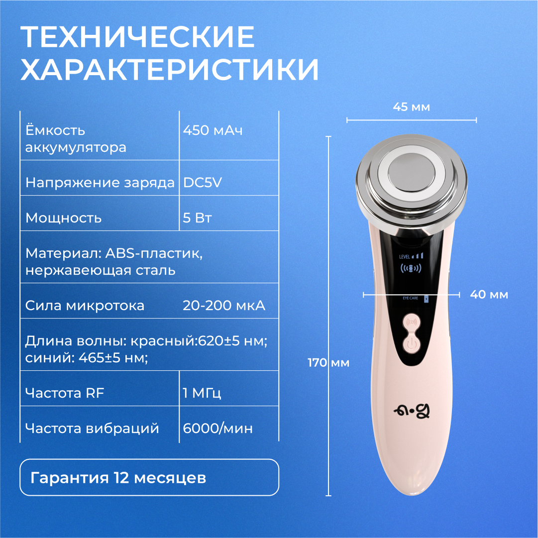 | Принцип работы | RF-лифтинг / вибрация / вращение / микротоки / пилинг / светотерапия / фонофорез |