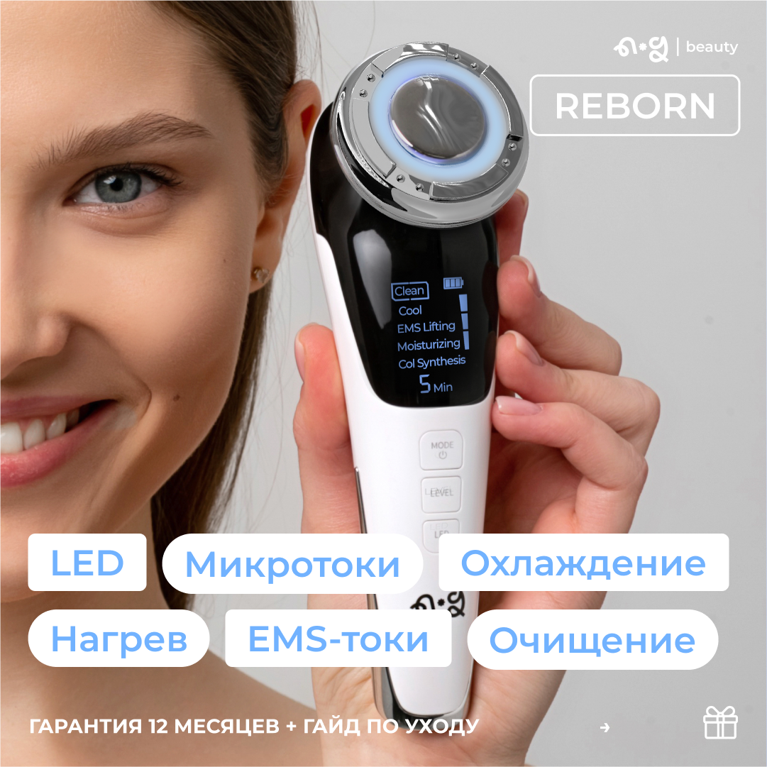 Аппарат Reborn Микротоковый массажер для лица шеи и плеч электрический с эффектом мезотерапии и светотерапии RF лифтинг EMS и омоложения кожи интересное: