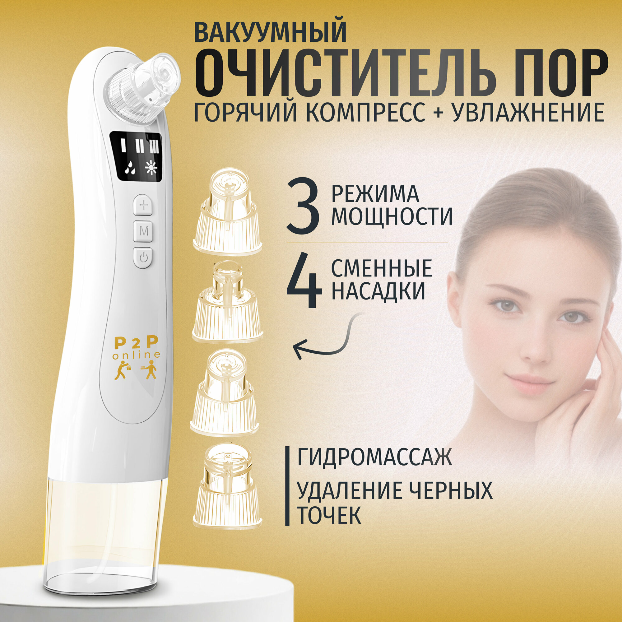 Мощный вакуумный очиститель пор. Гидропилинг + Компресс в одном приборе для чистки и сужения пор на лице. Массажер для чистки лица