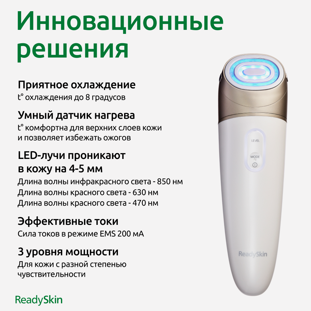 ReadySkin Eva Аппарат для омоложения, RF лифтинг, микротоки, LED хромотерапия, косметологический массажер для ухода за кожей лица, шеей и декольте интересное: