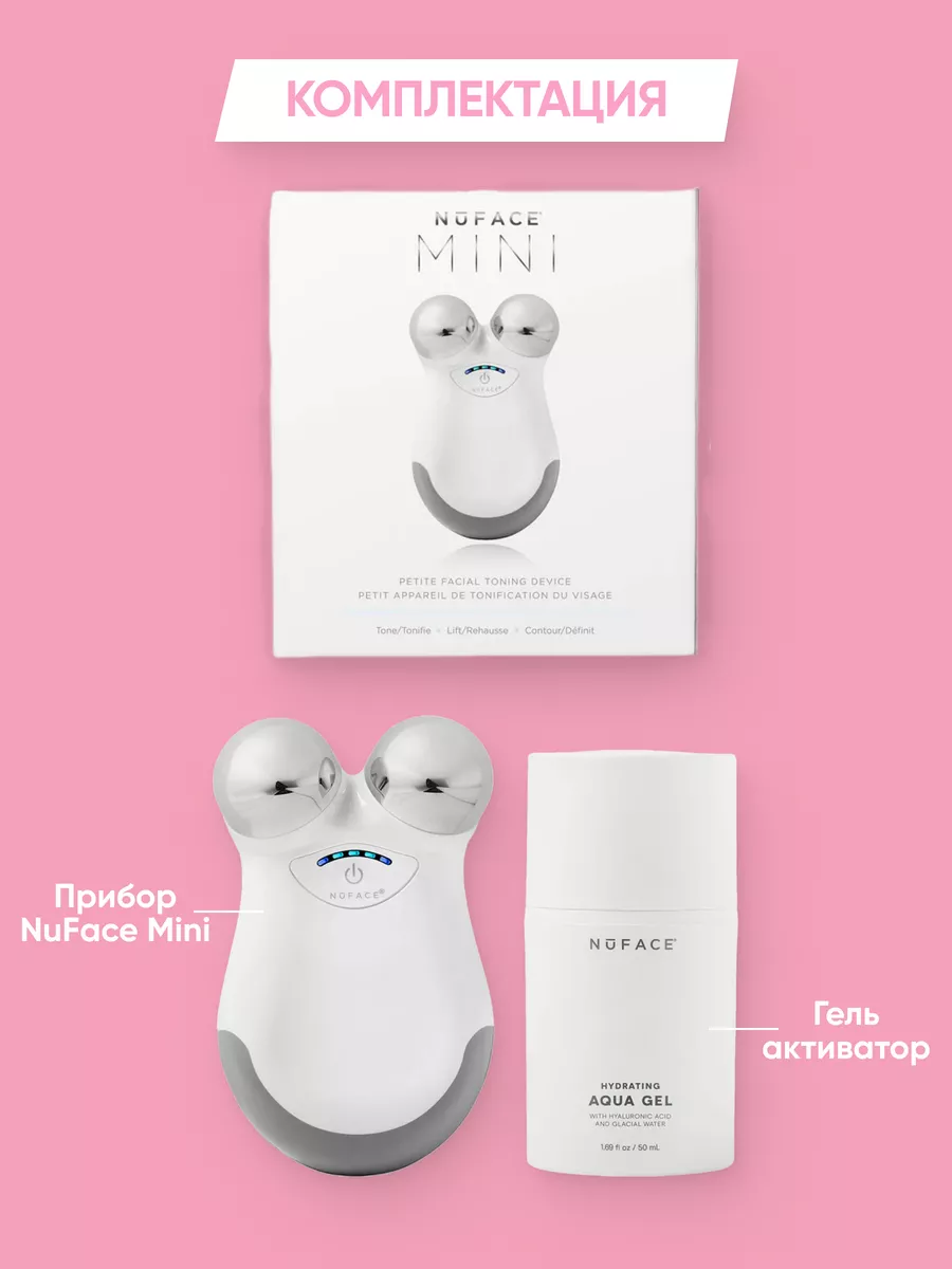 | Комплектность | Аппарат NuFace Mini - 1 шт, Зарядный блок - 1 шт, Инструкция - 1 шт, Гель-проводник с гилауроновой кислотой 50 мл - 1 шт |
