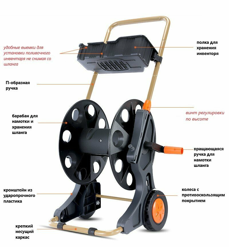 Катушка для шланга Garden season "PROFI" с колесами и лотком для хранения инвентаря (1/2-60м; 5/8-50м; 3/4-35м) интересное: