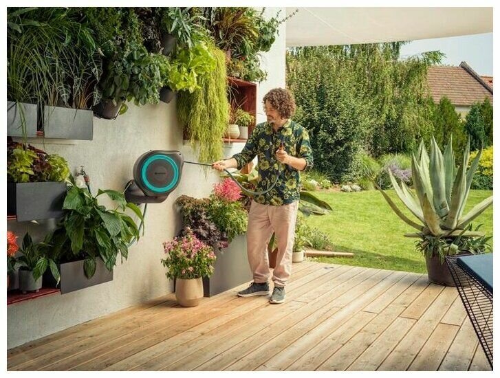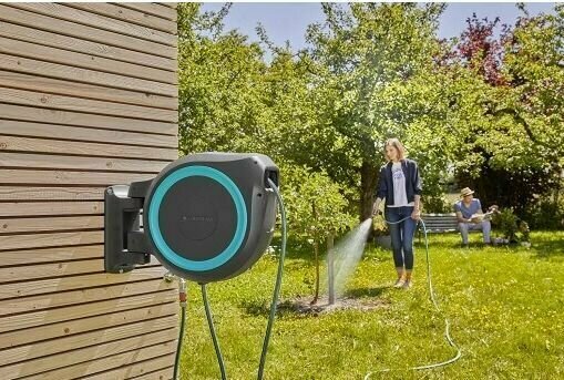 Катушка со шлангом настенная автоматическая Gardena RollUp L 30M интересное: