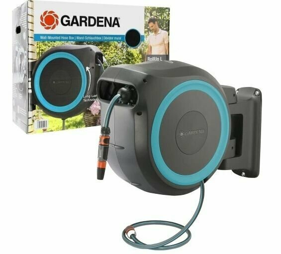 | Комплектация | Настенный барабан RollUp L включает в себя настенное крепление, 30-метровый садовый шланг, соединительный шланг, все необходимые компоненты системы Original GARDENA и дождеватель с двумя режимами струи воды. |