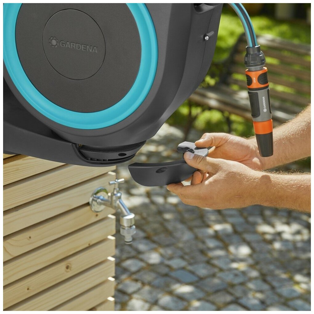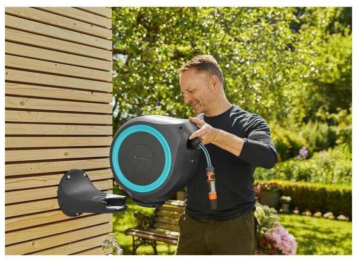 Катушка со шлангом настенная автоматическая Gardena RollUp S 15M интересное: