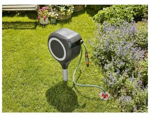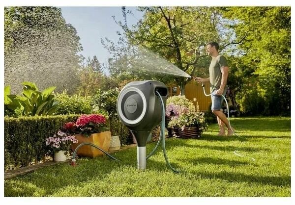Катушка со шлангом напольная автоматическая Gardena RollUp S 15М интересное:
