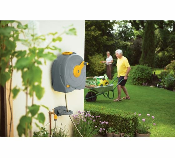 Купить Катушка с ручной перемоткой шланга HoZelock FastReel, диаметр шланга 1/2", длина 40 м, настенная, насадки в комплекте