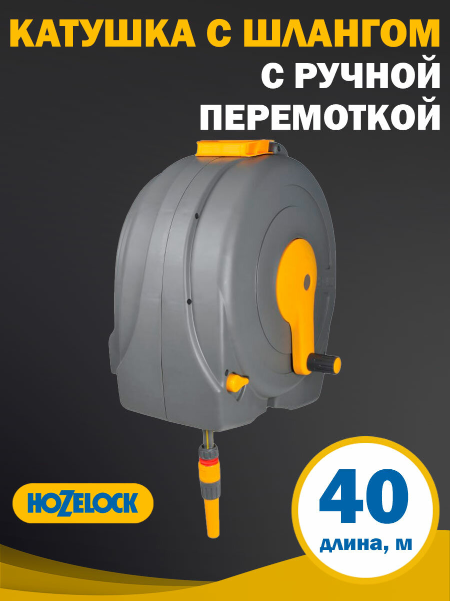 Катушка с ручной перемоткой шланга HoZelock FastReel, диаметр шланга 1/2", длина 40 м, настенная, насадки в комплекте интересное: