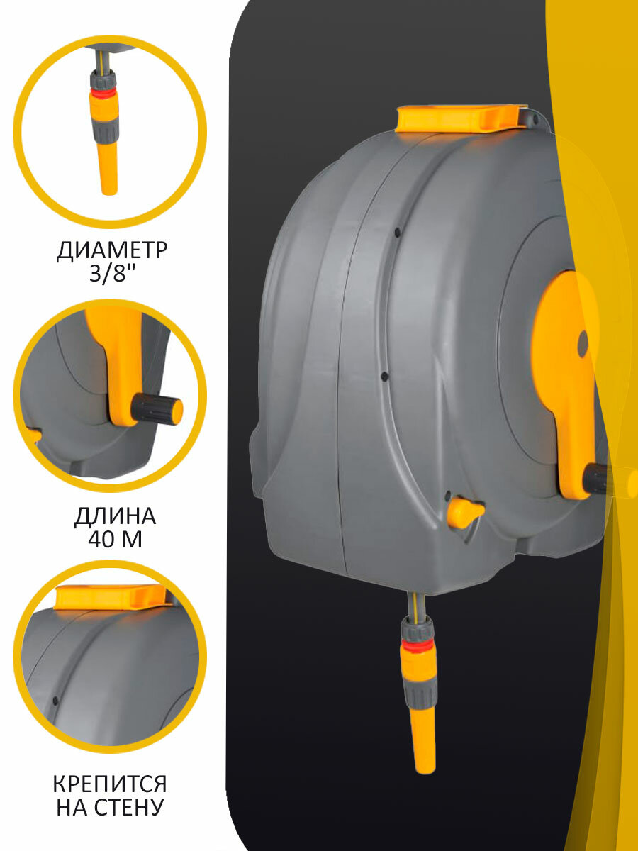 | Комплектация | Катушка - 1 шт.; Шланг (3/8") - 40 м; Коннектор - 2 шт.; Упаковка |