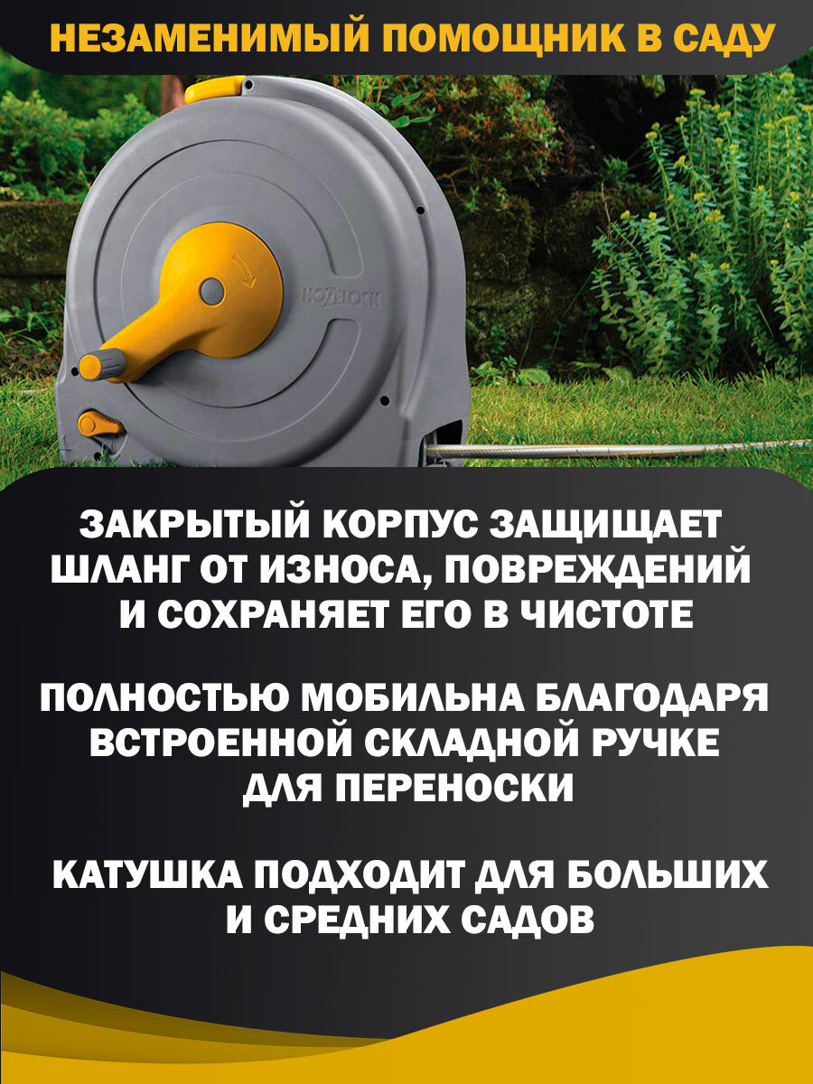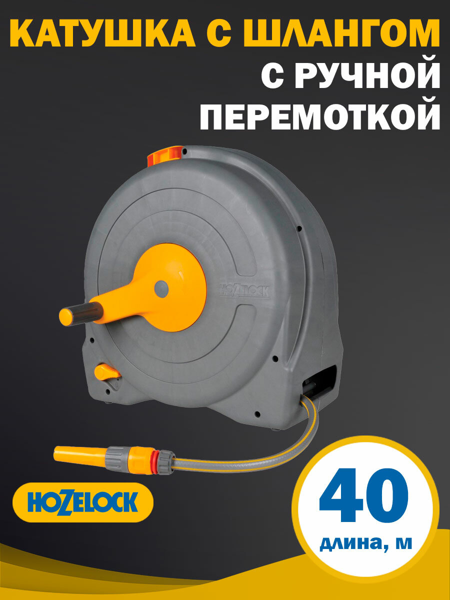 Катушка с ручной перемоткой шланга HoZelock FastReel, диаметр шланга 1/2", длина 40 м, насадки в комплекте интересное: