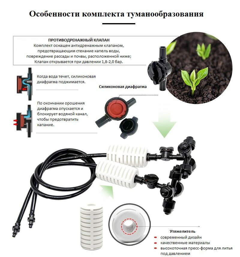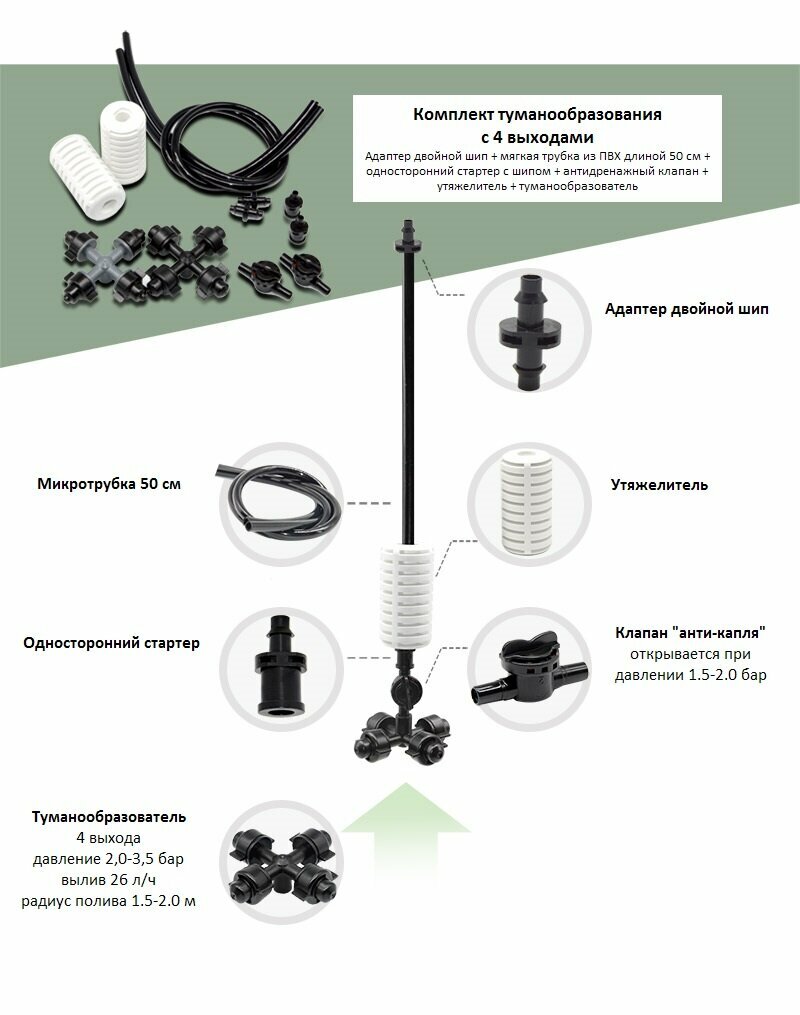 Комплект туманообразования для теплиц, 26 л/ч, подвес 50 см, антикапля, 5 штук интересное: