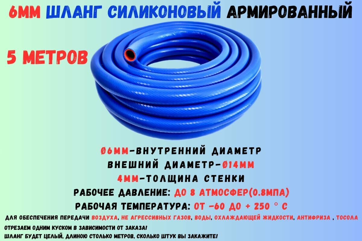 5 метров - Силиконовый шланг 6мм, шланг силиконовый армированный, силиконовый рукав, внутренний диаметр 6мм