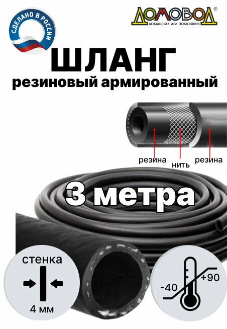 Купить Шланг резиновый для полива армированный кордовый всесезонный кварт d18мм длина 3 м не перегибается ДомовоД ША1018-3
