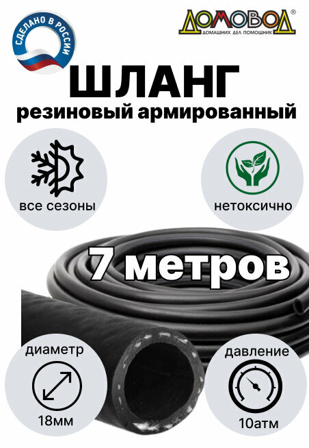 Купить Шланг поливочный резиновый армированный кордовый всесезонный кварт d18мм длина 7 м не перегибается ДомовоД ША1018-7