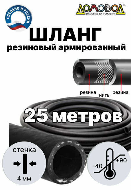 Купить Шланг для полива резиновый армированный кордовый всесезонный кварт d18мм длина 25 м не перегибается ДомовоД ША1018-25