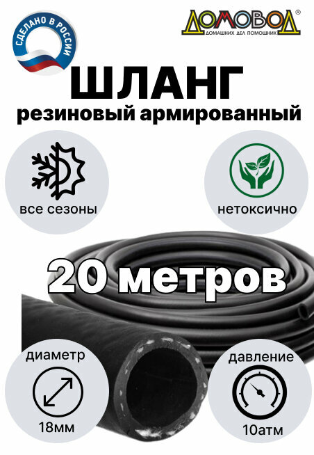 Купить Шланг для полива резиновый армированный кордовый всесезонный кварт d18мм длина 20 м не перекручивается ДомовоД ША1018-20