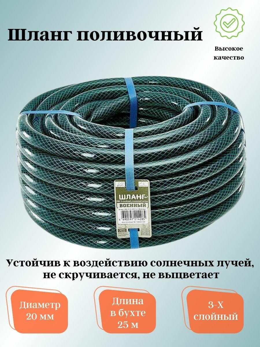 Шланг армированный 3-х слойный полив.ПВХ 3/4-20мм (25м) непрозрачн.черно-зел.военный г.Аксай интересное: