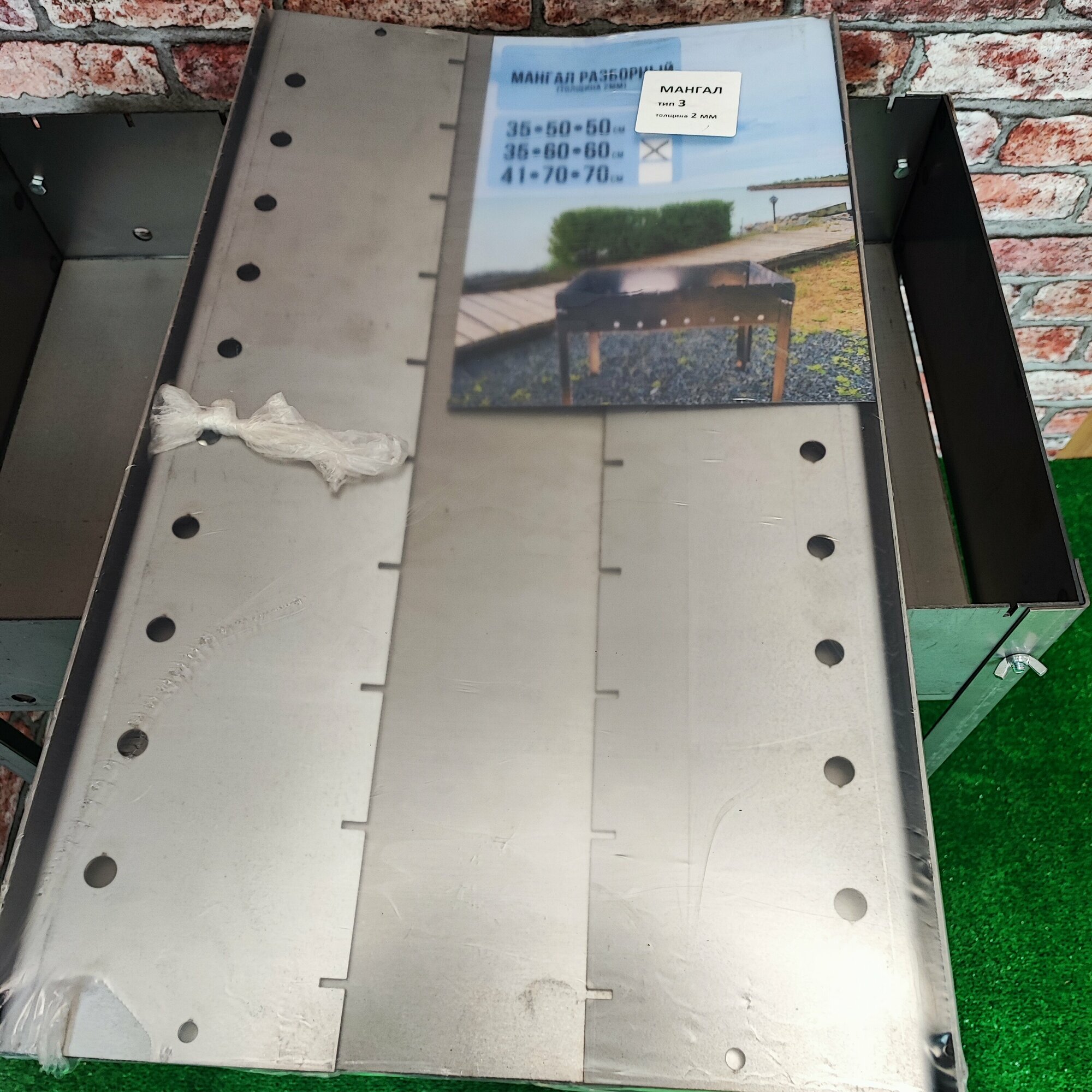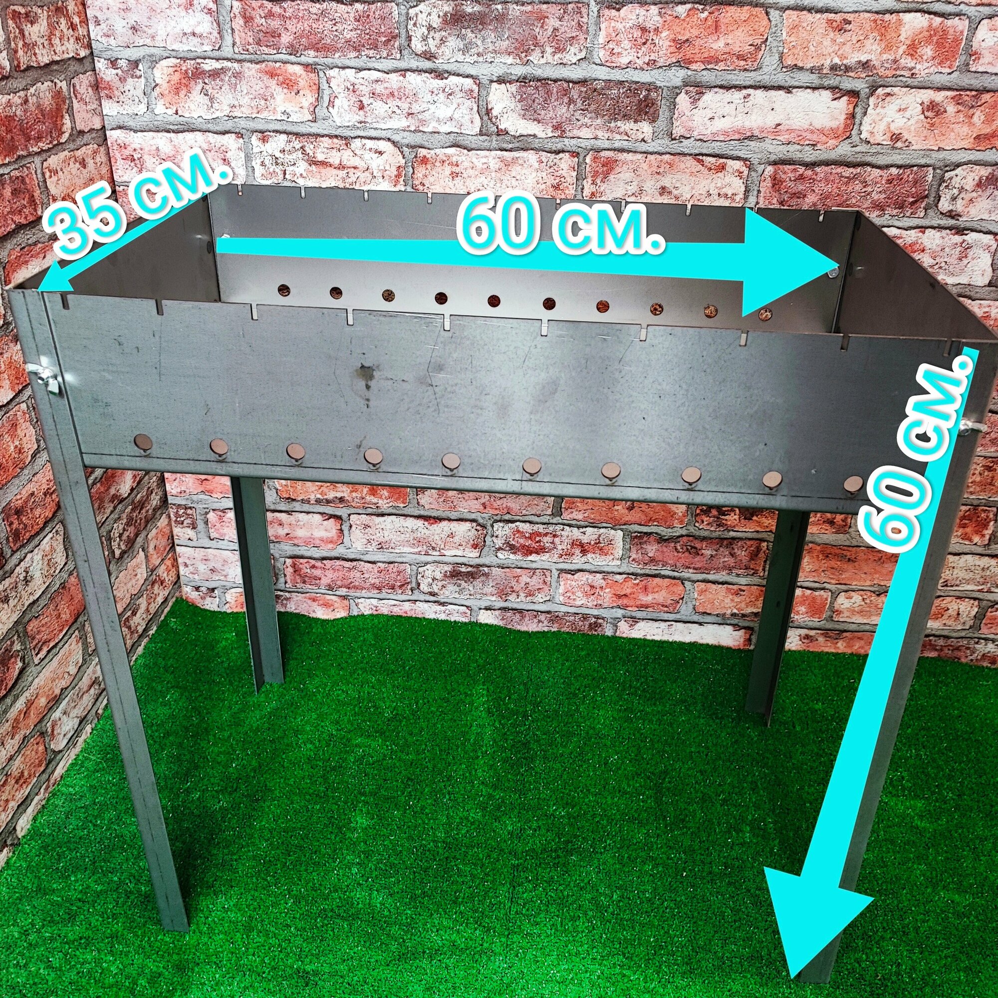 Мангал разборный, толщина листа 2 мм., на 10 шампуров // L-600 мм., B-350 мм., H-600 мм., h-120 мм. интересное: