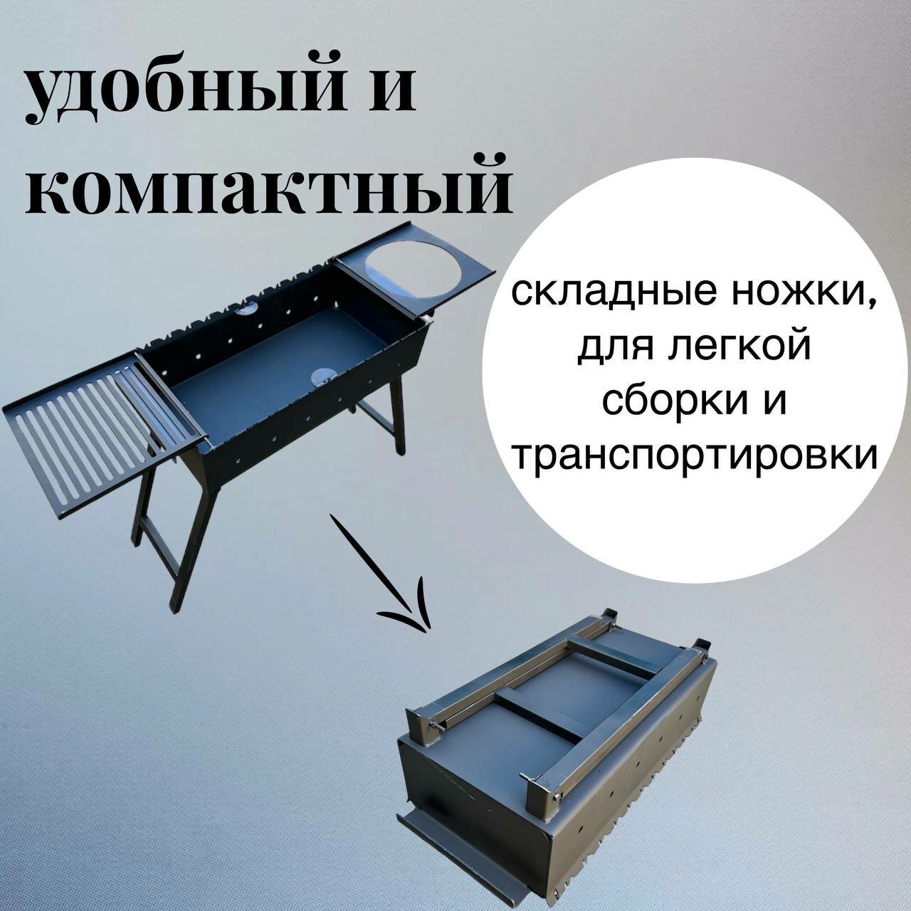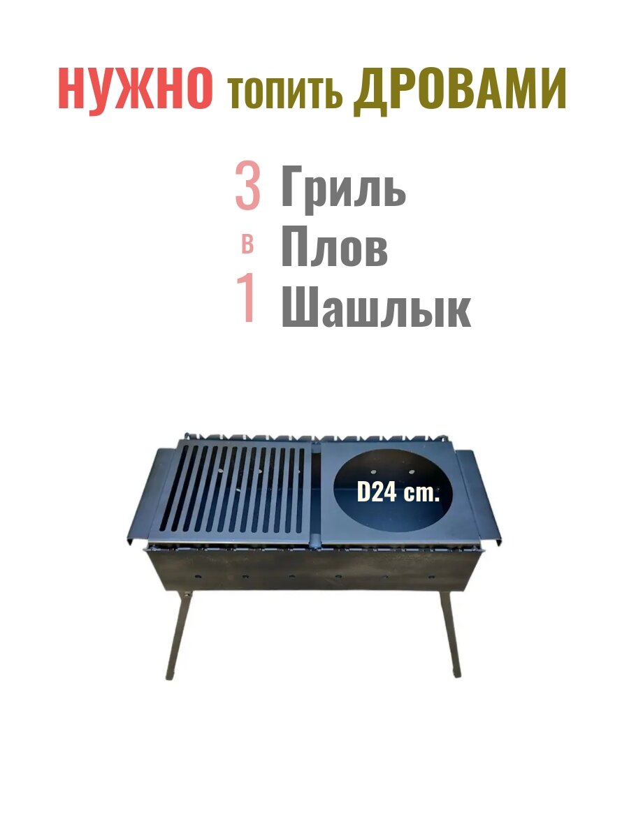 Мангал складной 600 мм с полкой-решеткой, полкой под казан сталь 3 мм интересное: