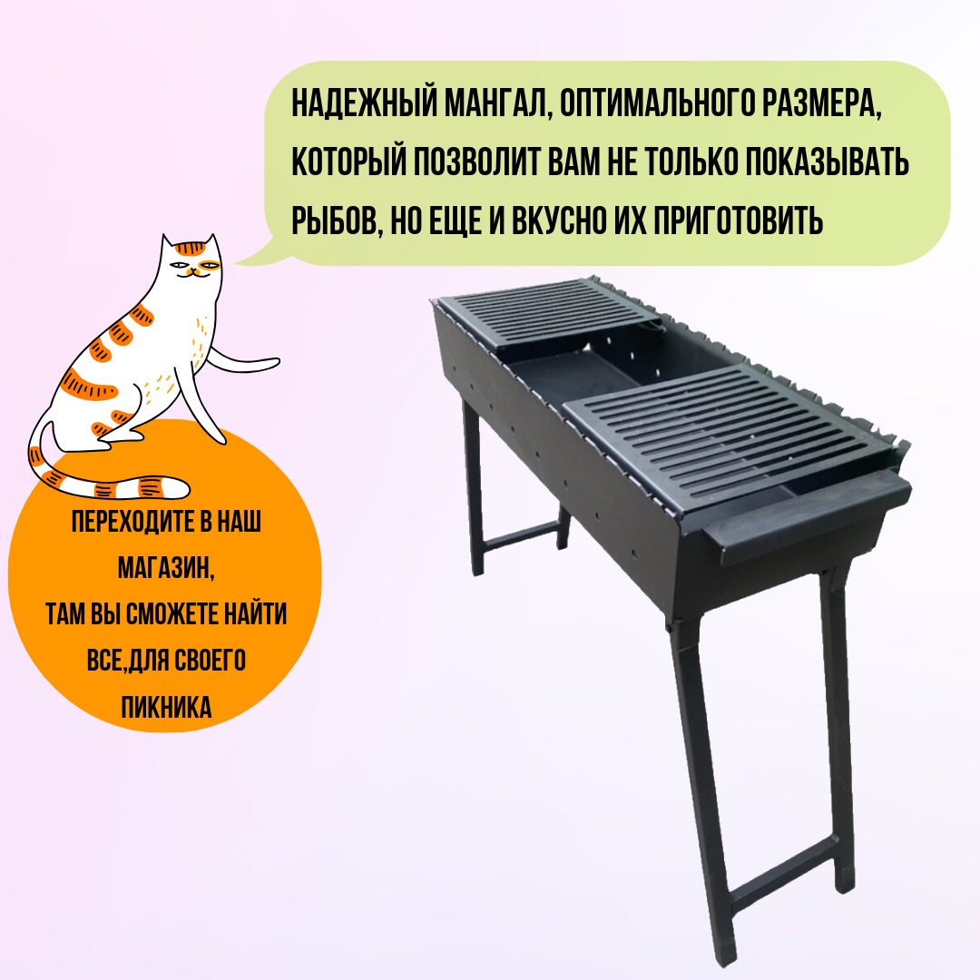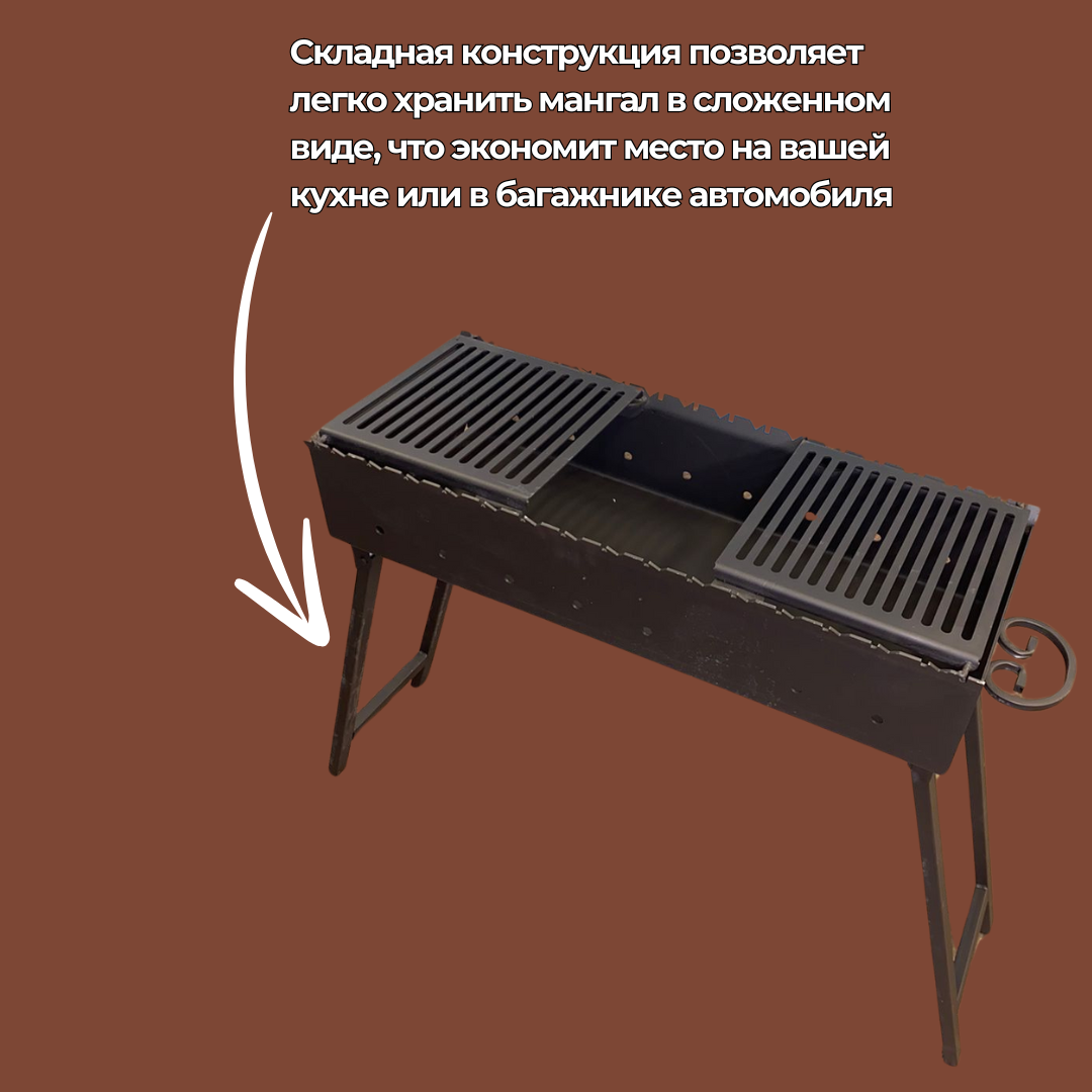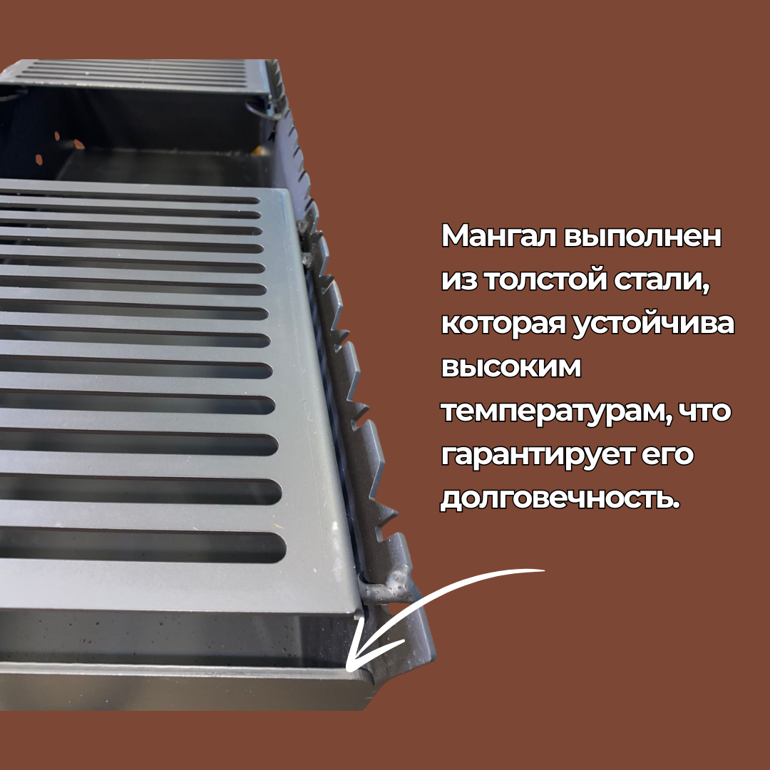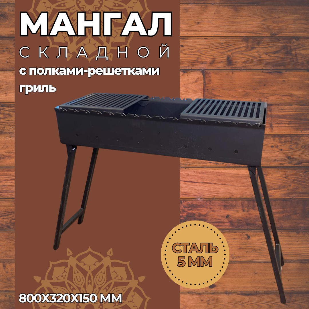 Мангал складной 800 мм. с полками-решетками гриль, сталь 5 мм. интересное: