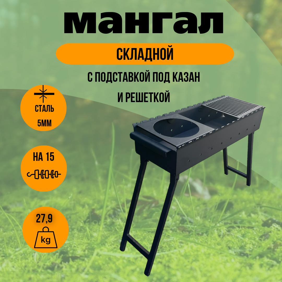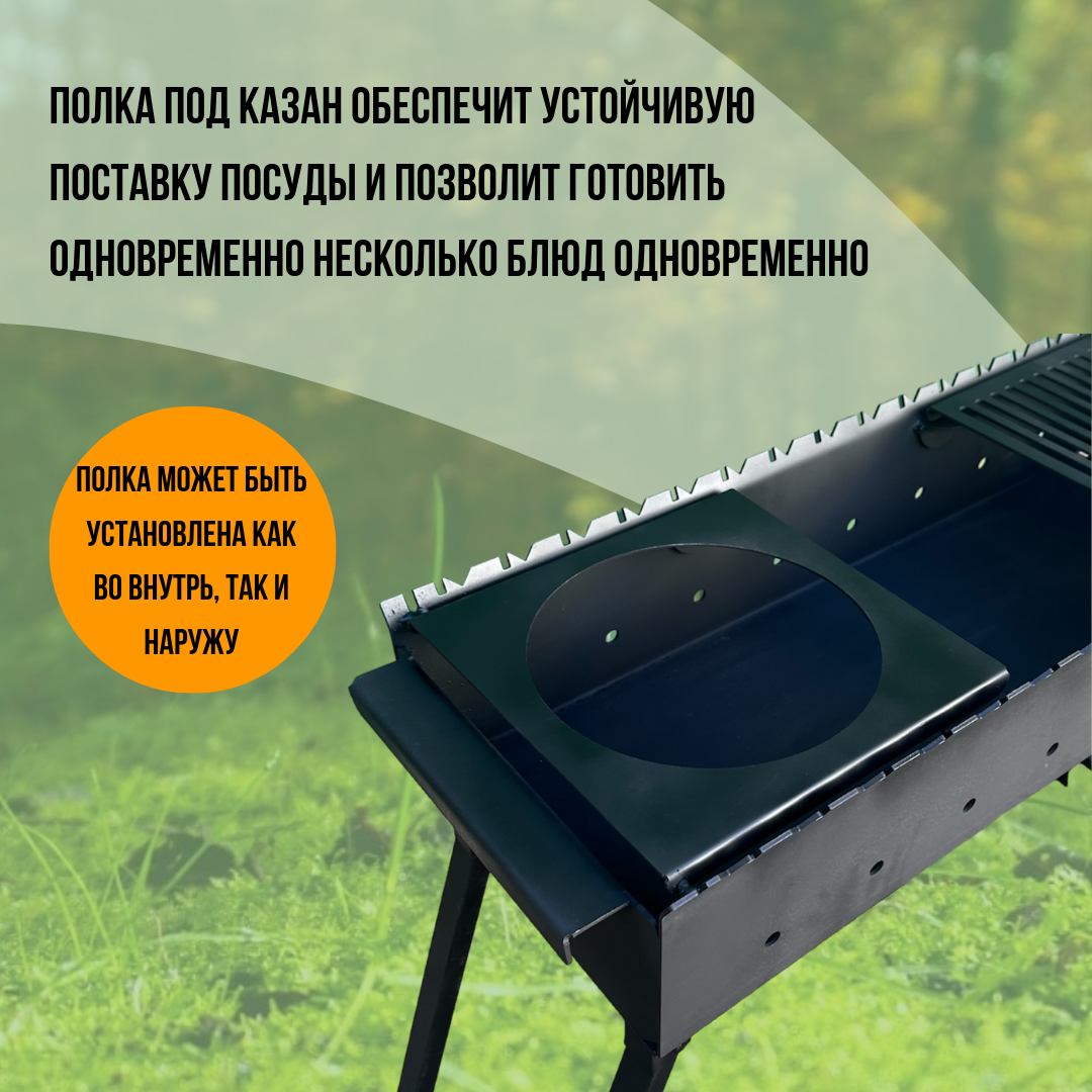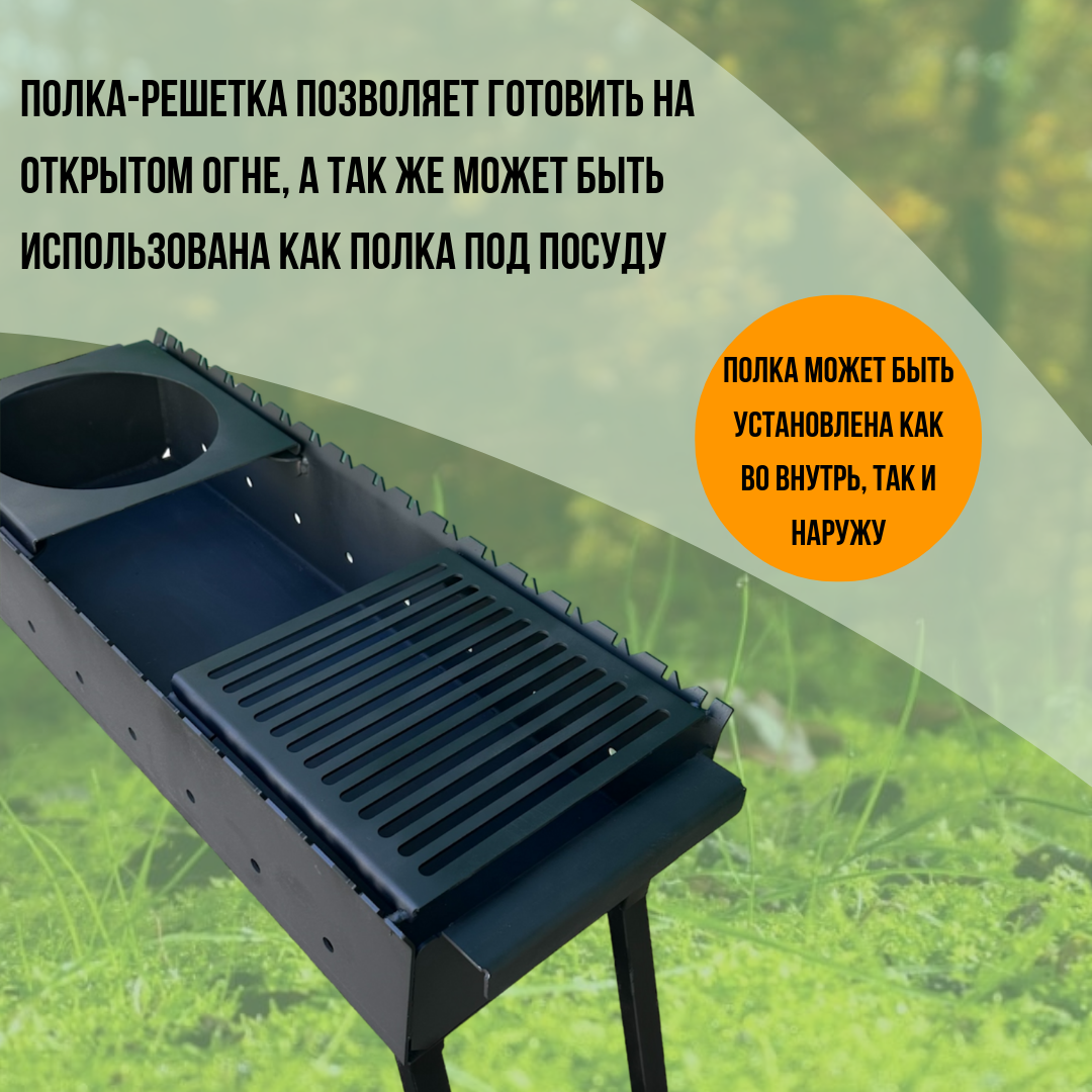 Мангал складной 800 мм, 5 мм с полкой решеткой и полкой под казан интересное: