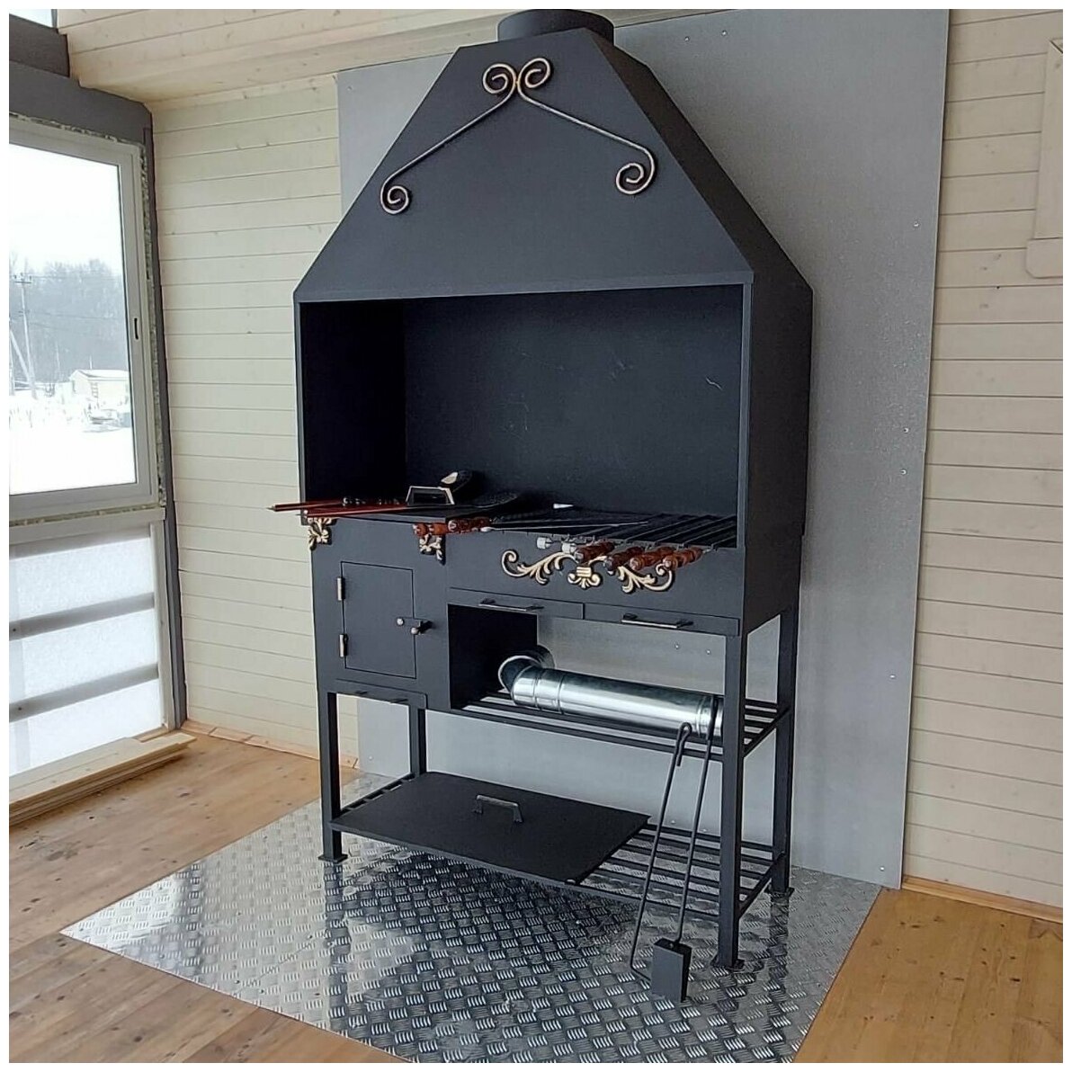 Мангал с печкой и вытяжкой для беседки из стали 4 мм интересное:
