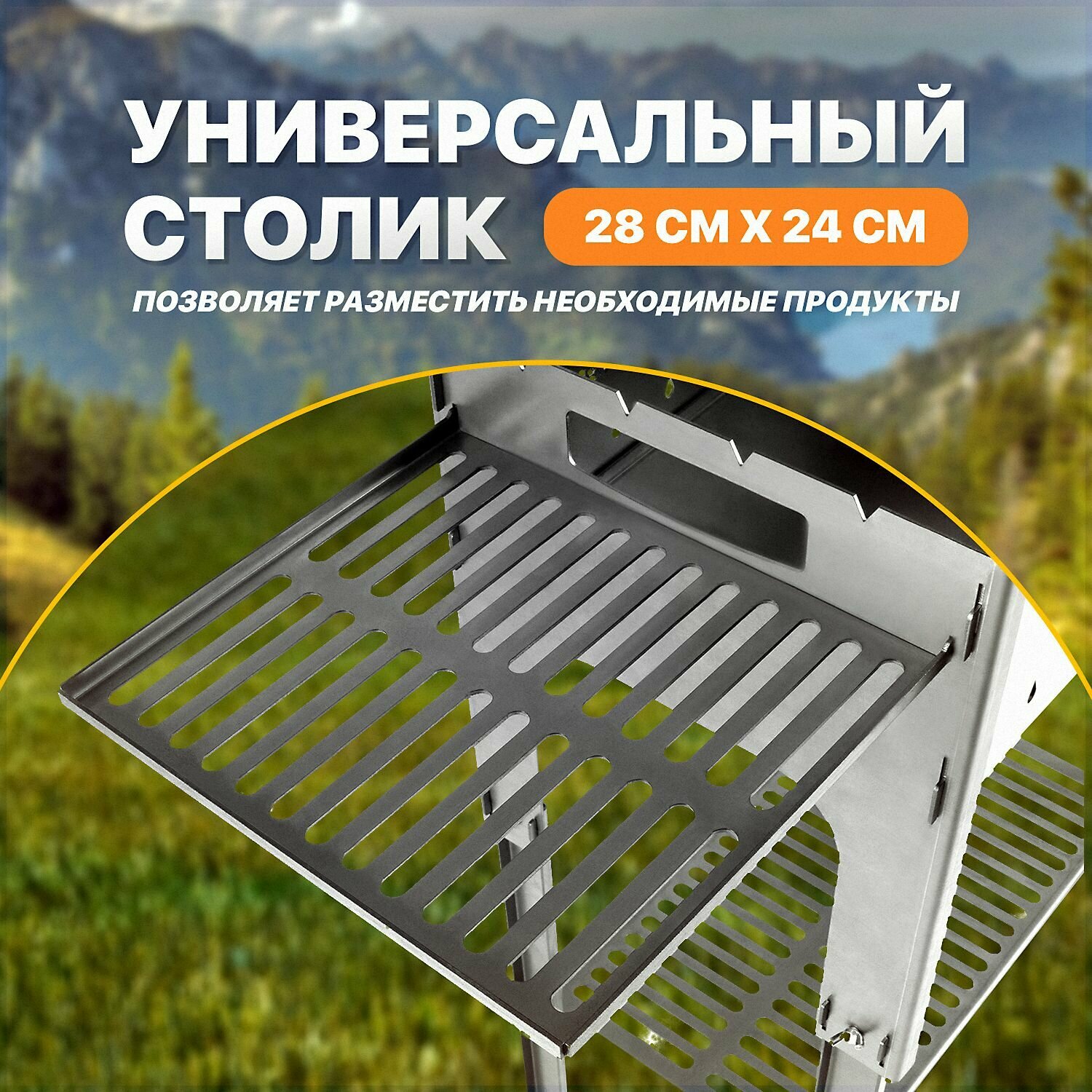 Мангал, Мангал складной со столиком и подставкой под казан, мангал высокий, мангал для дачи 718х310х752 мм, сталь 2 мм.