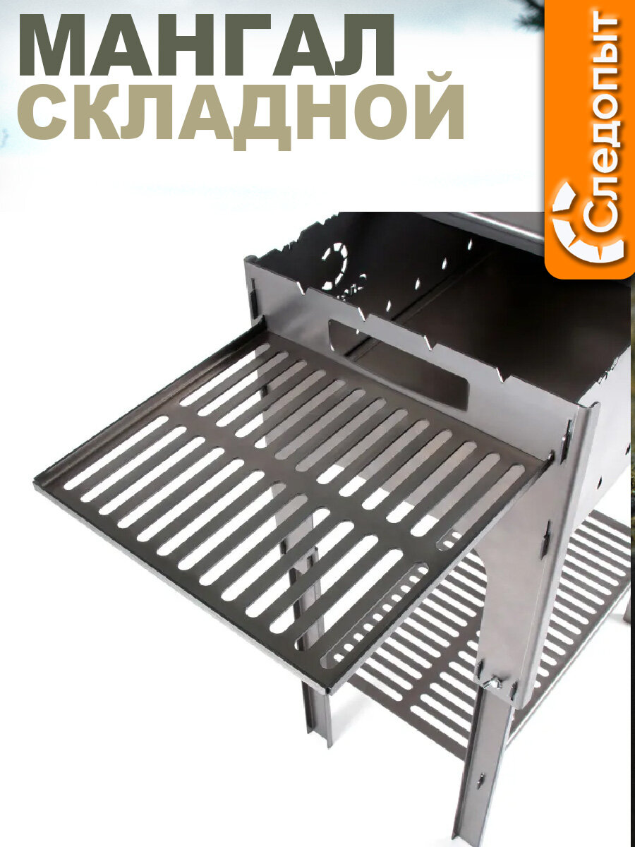 Мангал складной походный Следопыт, 490х310х370 мм, толщина 2 мм, многоразовый, без шампуров / Мангал дачный PF-GR-01