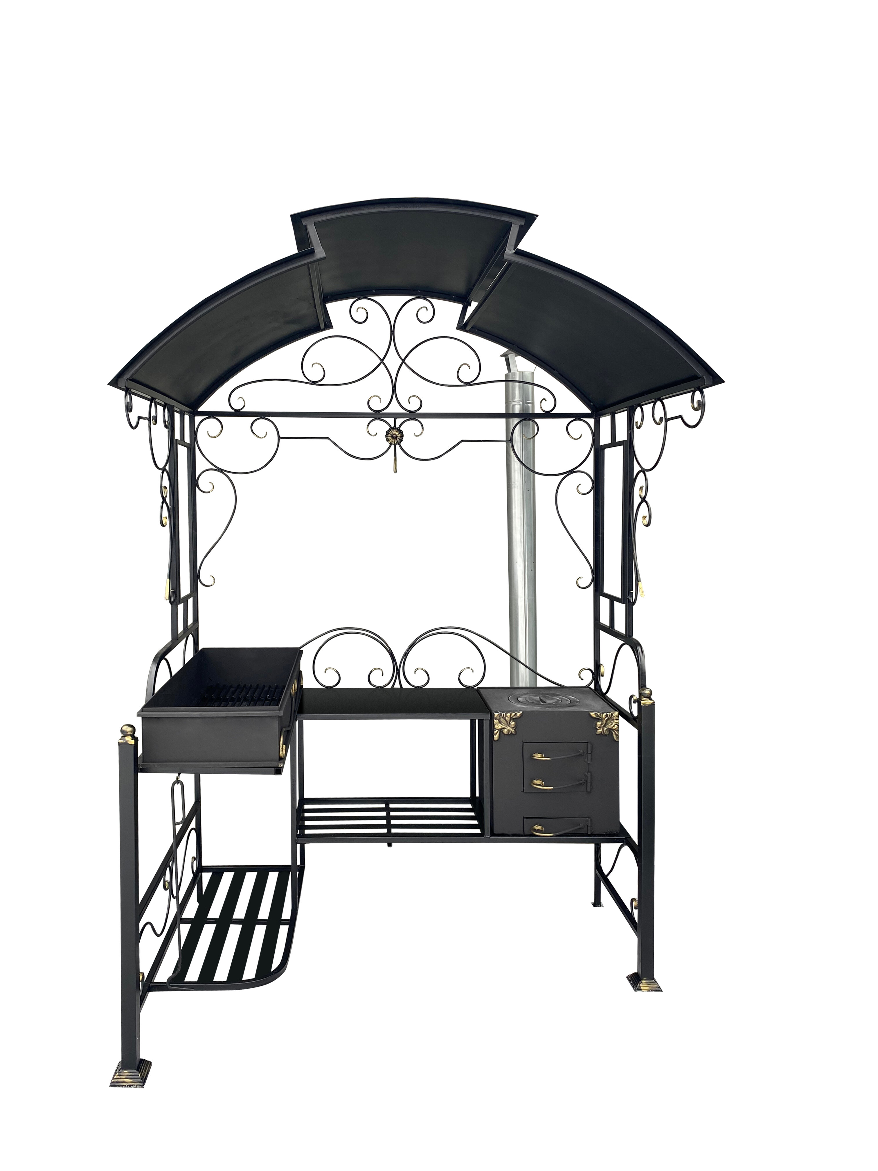 Мангал для дачи с крышей Kovmangal Модерн 220 х 150 х 105 см интересное:
