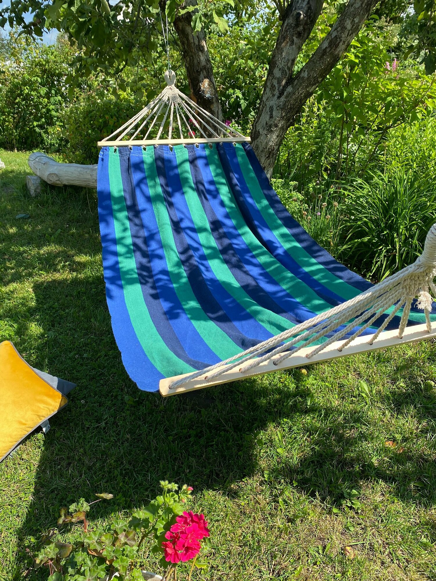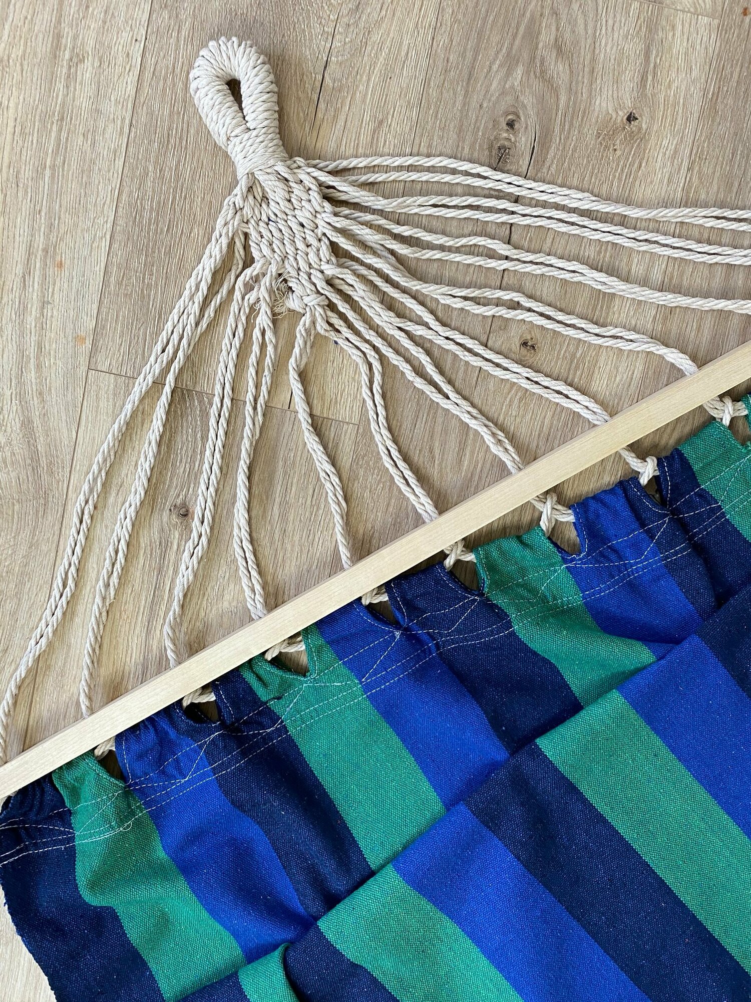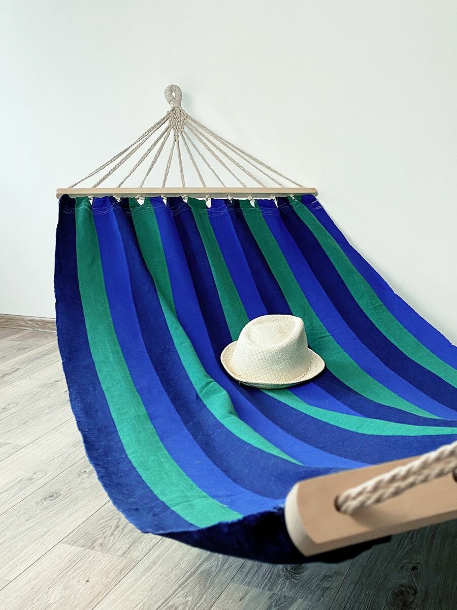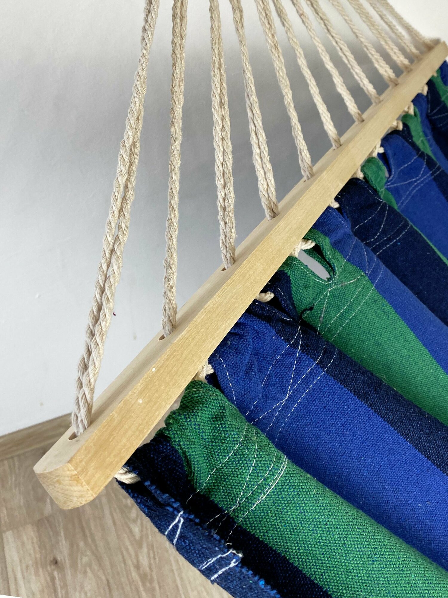 Гамак подвесной для дома и дачи гелеос ГП201020, размер 200х100см, с деревянной планкой, хлопок, сине-зеленый интересное: