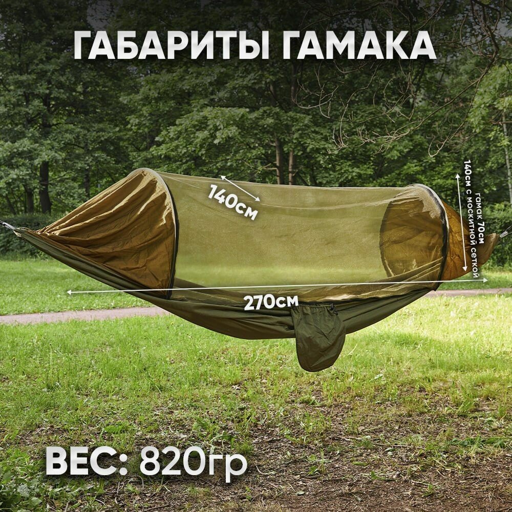 Гамак для дачи подвесной зеленый Oqqi, с антимоскитной сеткой и чехлом, туристический 270х140 см интересное: