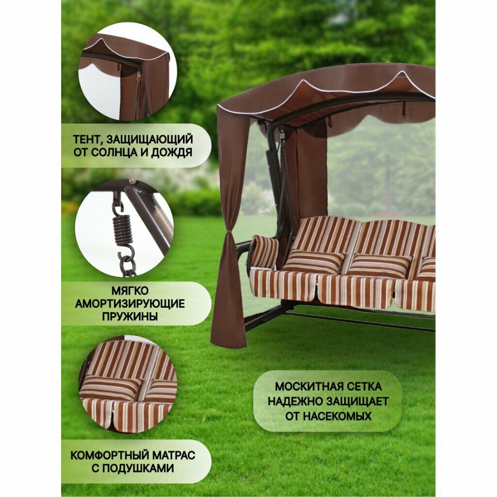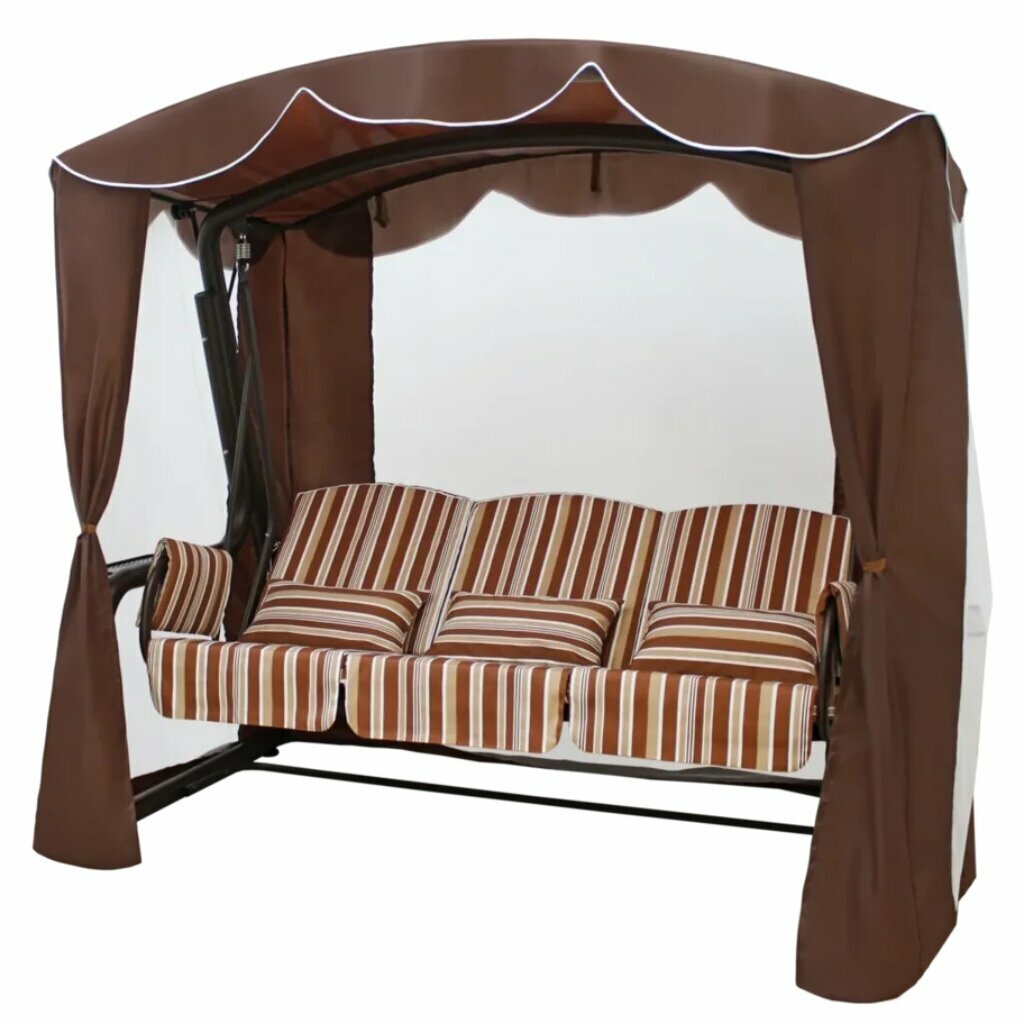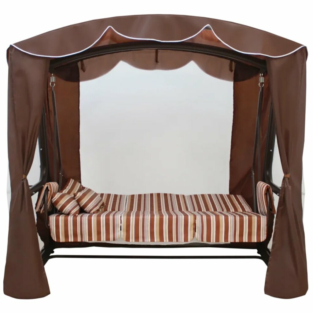 Качели садовые 4-х местные Ольса Шатер ткань панама каркас коричневый, ткань полоска бежево-коричневная