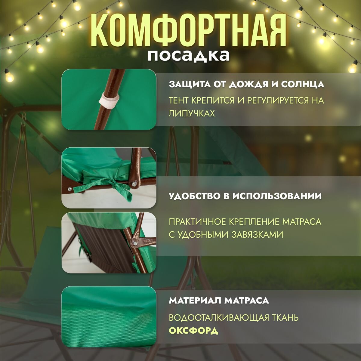 Садовые качели STULER двухместные для дачи и сада, максимальная нагрузка 200 кг с тентом и матрасом интересное: