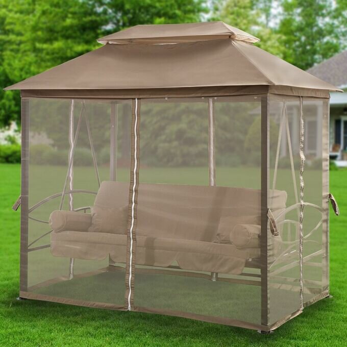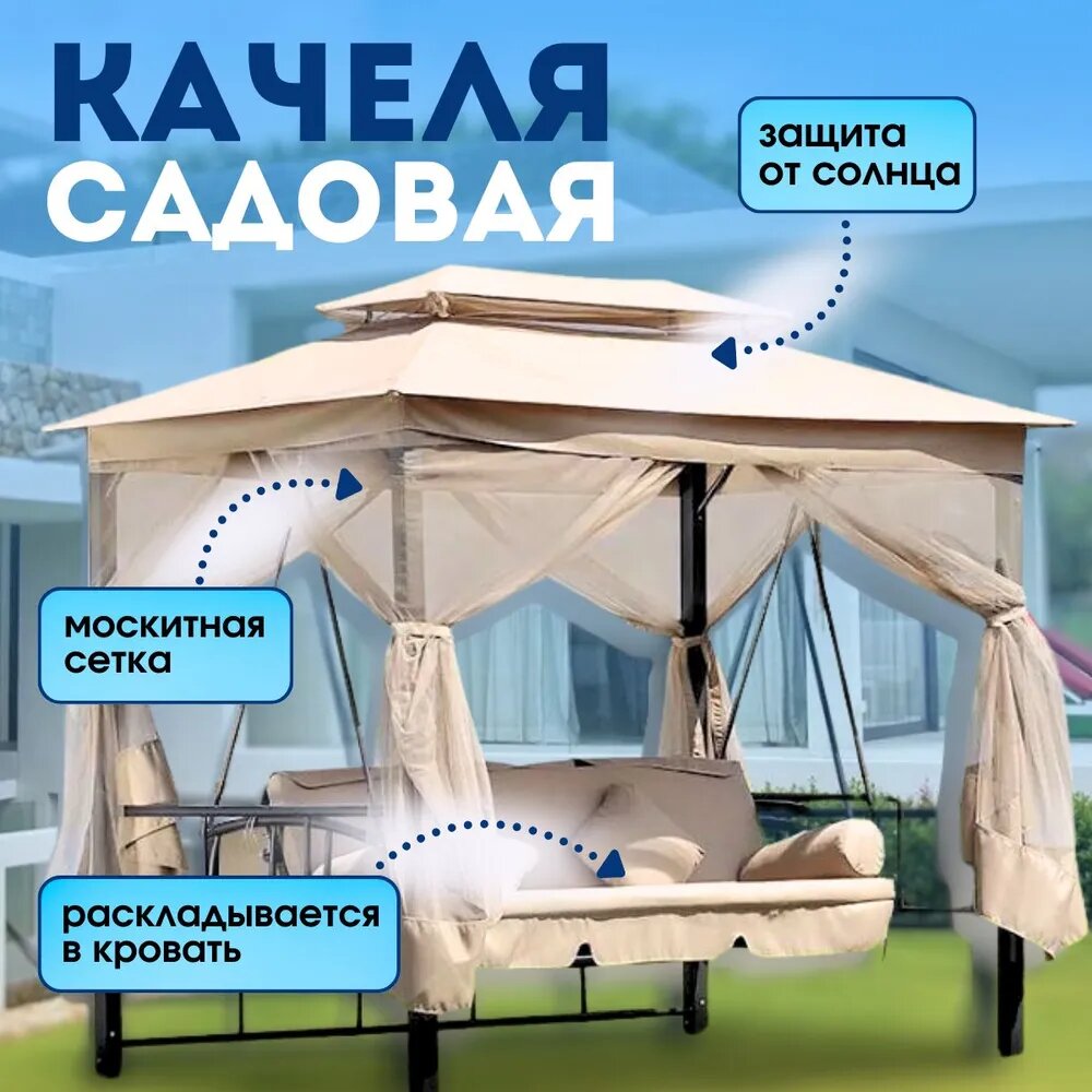 Садовые качели Удачная мебель "Амаре", 3-х местные, антимоскитный тент, бежевые