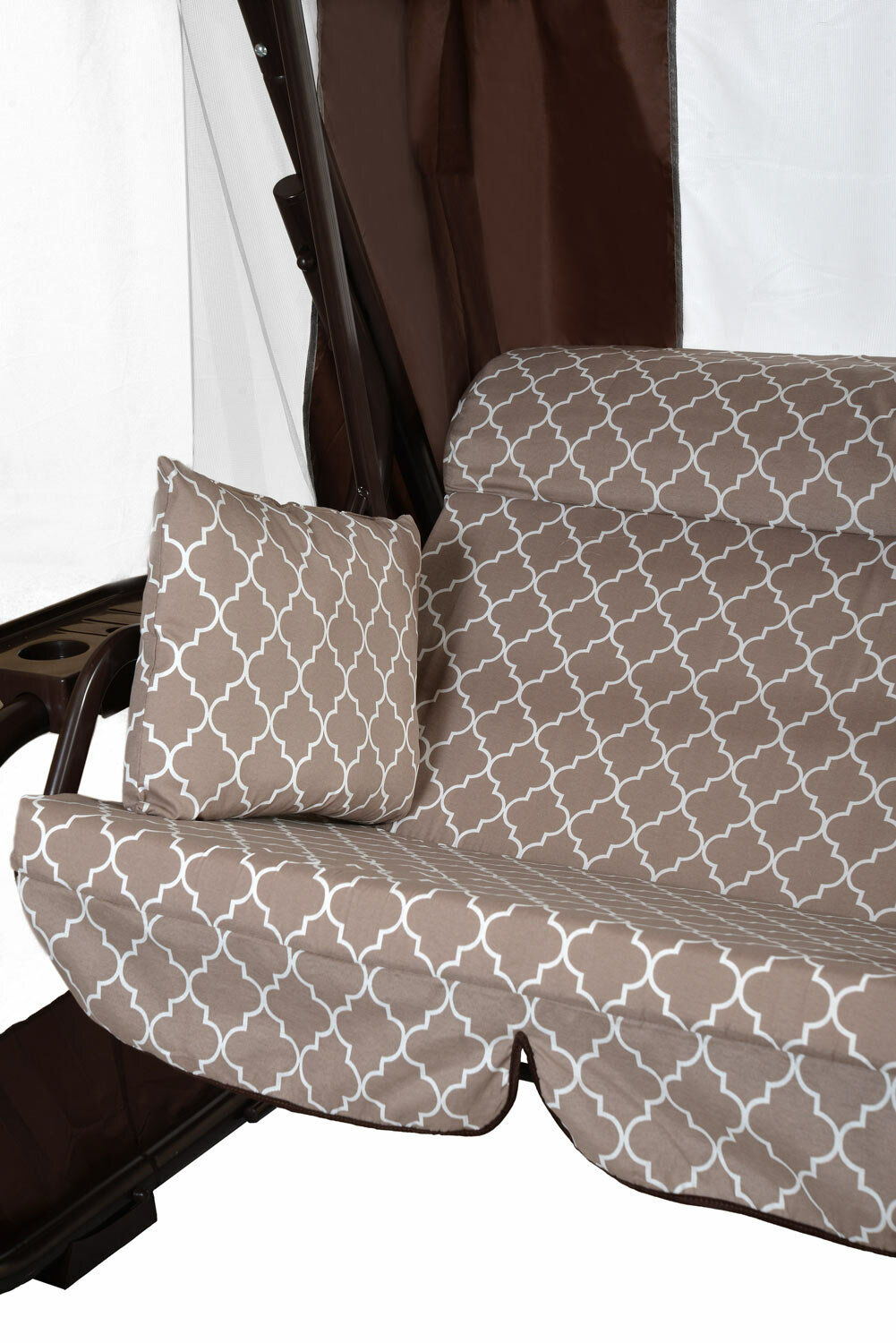 Качели садовые 4-х местные Ольса Шатер ткань панама каркас коричневый, ткань полоска бежево-коричневная