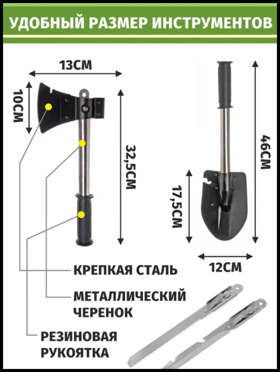 Складная лопата, автомобильная лопата, туристическая многофункциональная 4 в 1 GJ-444 интересное: