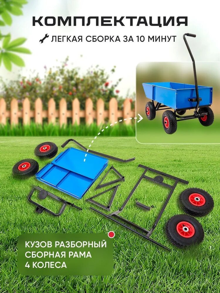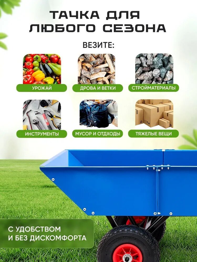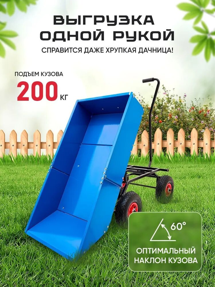 Тележка садовая Крестьянка четырехколесная / тачка самосвал для дома и дачи до 200 кг интересное: