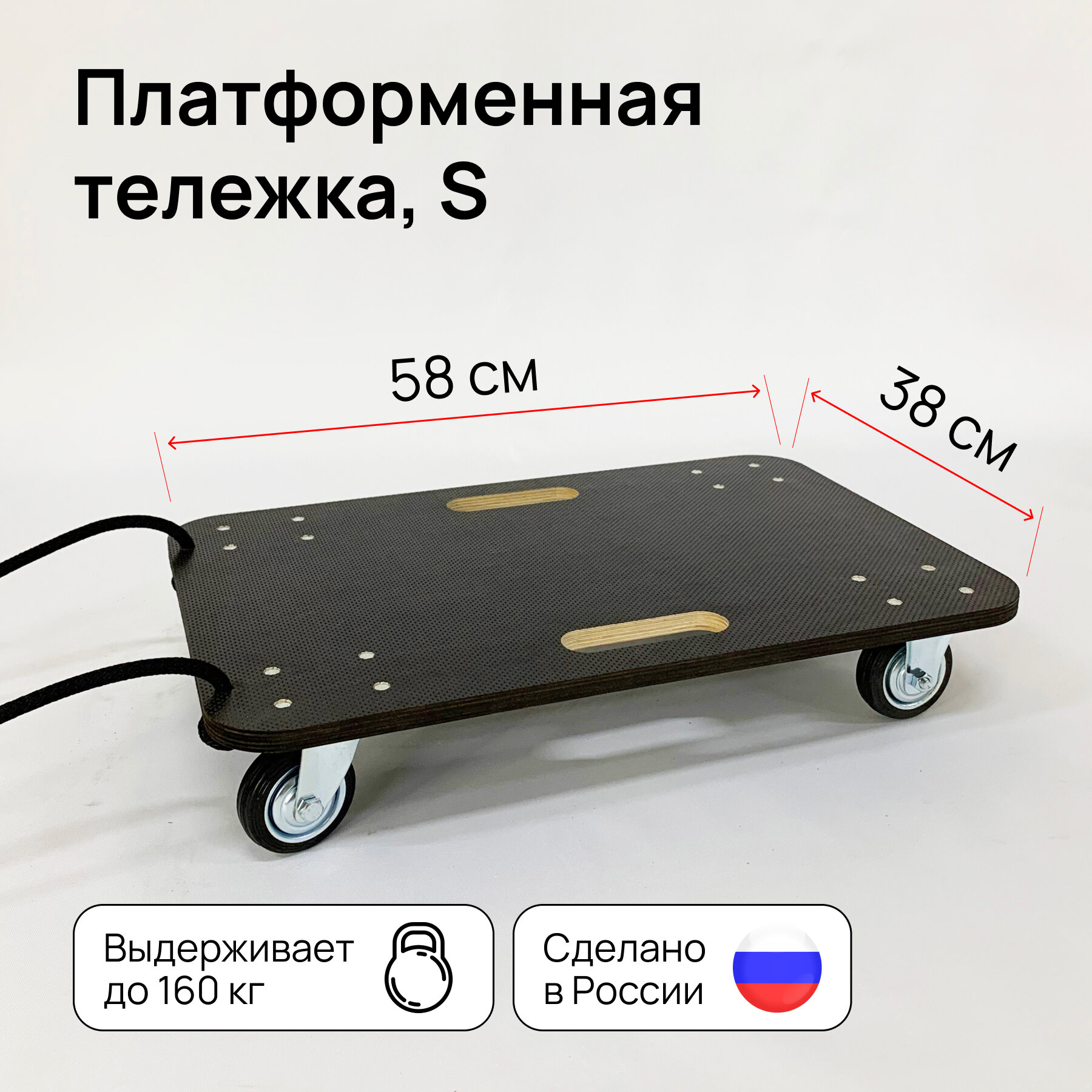 Тележка платформенная грузовая строительная, телега размер S, четырехколесная, поворотная, складская, до 160 кг (580×380 мм) интересное: