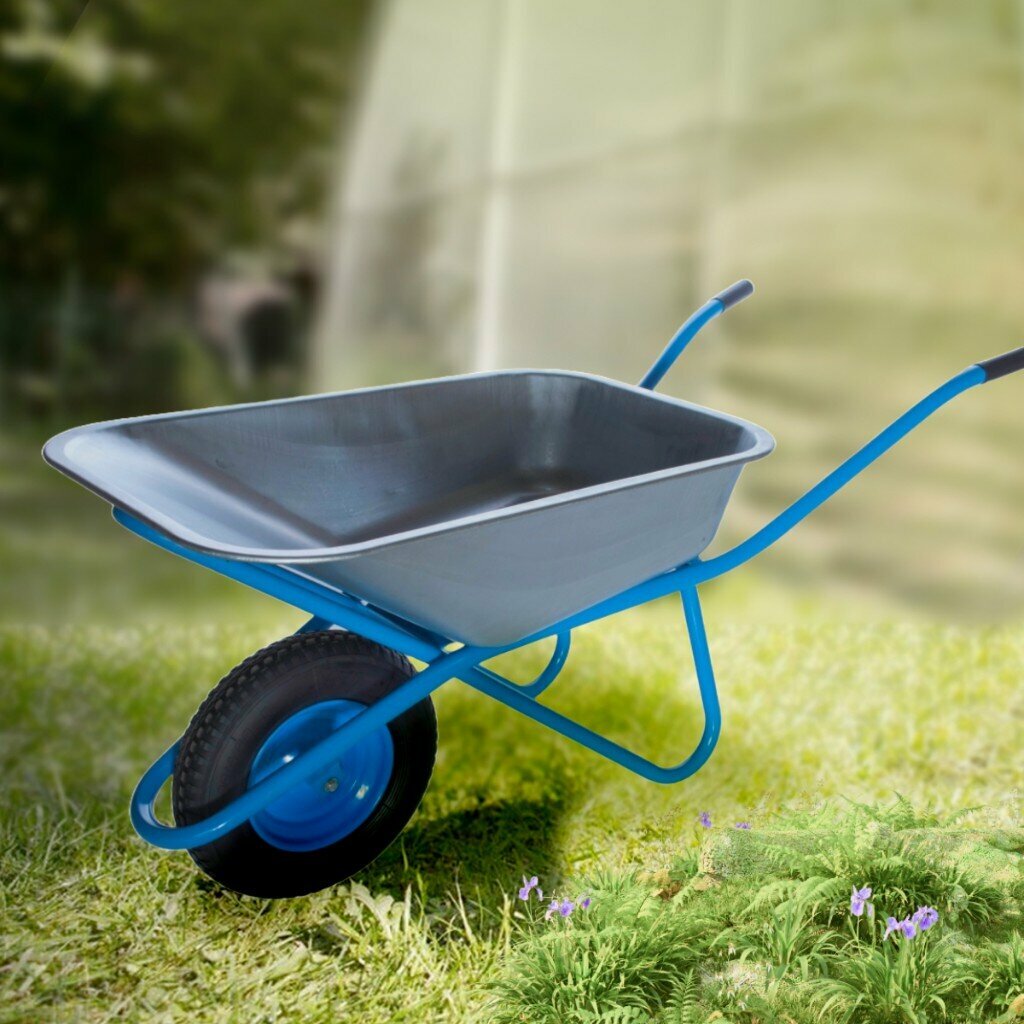 Тачка строительная одноколесная, сталь, 250 кг, 110 л, втулка D16 мм, D12, D16, 4.80/4.00х8, голубая, Мастер Инструмент интересное: