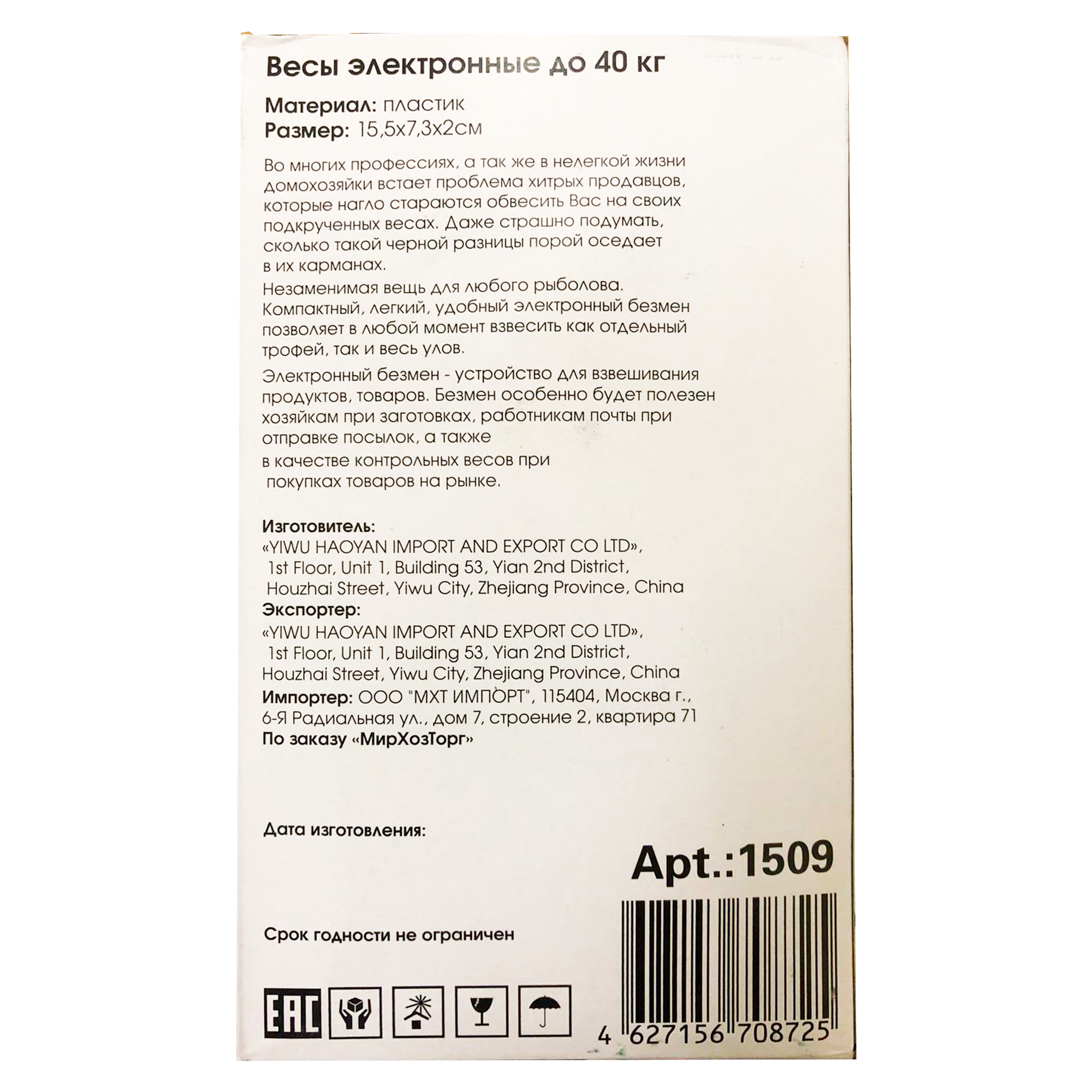 Ниже Вы можете прочитать отзывы на Весы электронные безмен до 40кг 1509, ознакомится с подробными характеристиками, посмотреть интересные обзоры и фотографии на Весы электронные безмен до 40кг 1509.