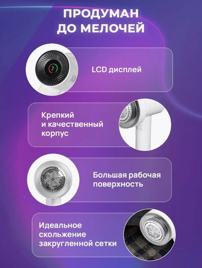 Машинка для удаления катышков/от катышек/Миниклинер/Триммер для ткани /аккумулятор/снятие катышек с одежды/с дисплеем/белый/ремувер интересное: