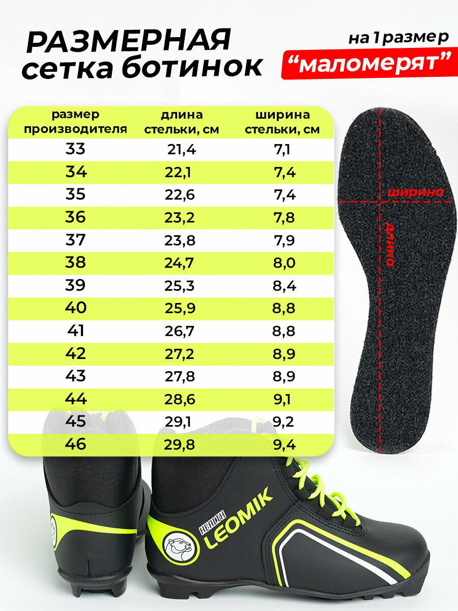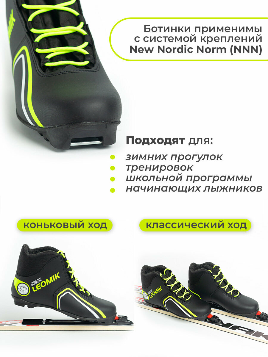 Ботинки лыжные Leomik Health (green) NNN, размер 34, черно-неоновые