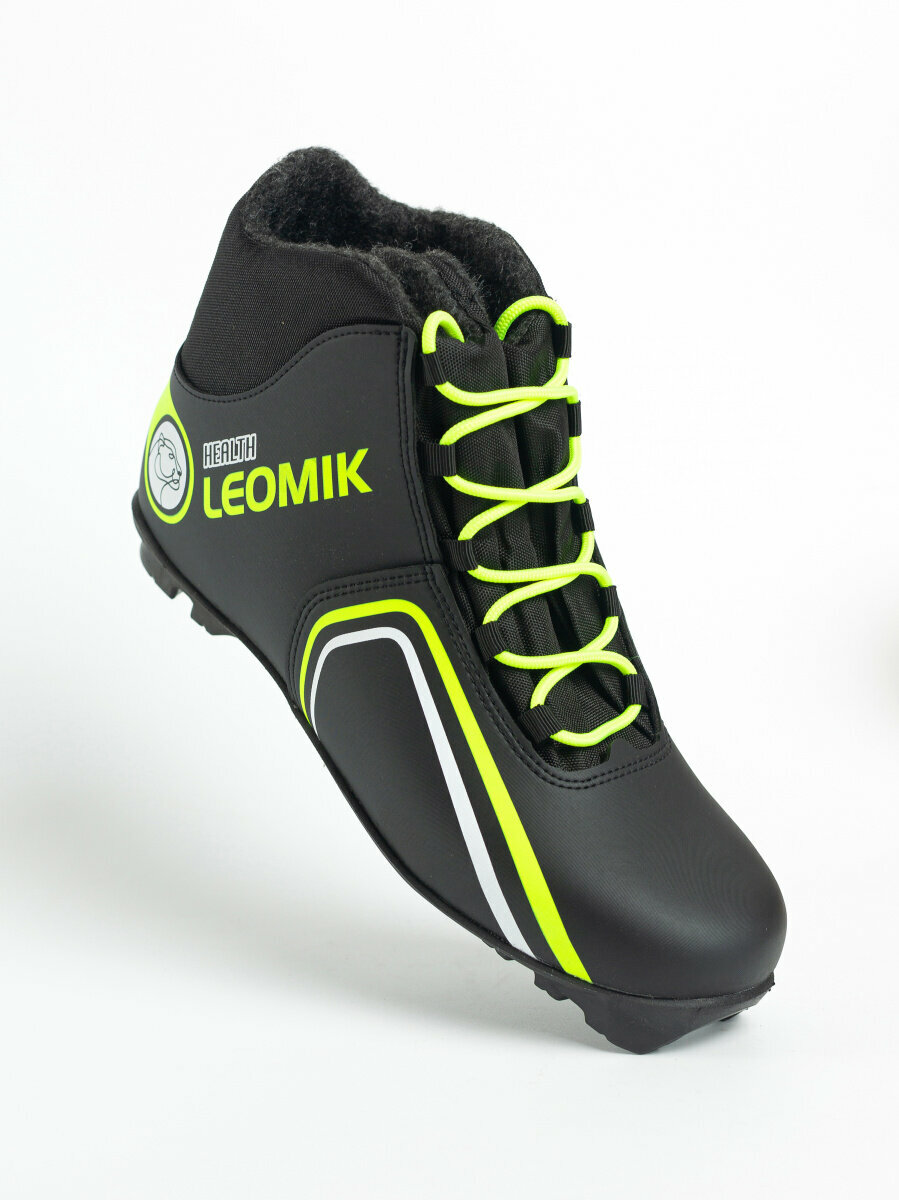 Ботинки лыжные Leomik Health (green) NNN, размер 33, черно-неоновые