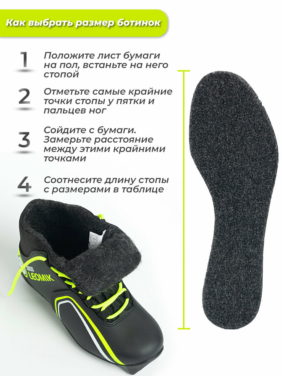 Ботинки лыжные Leomik Health (green) черные размер 42 для беговых прогулочных лыж крепление NNN