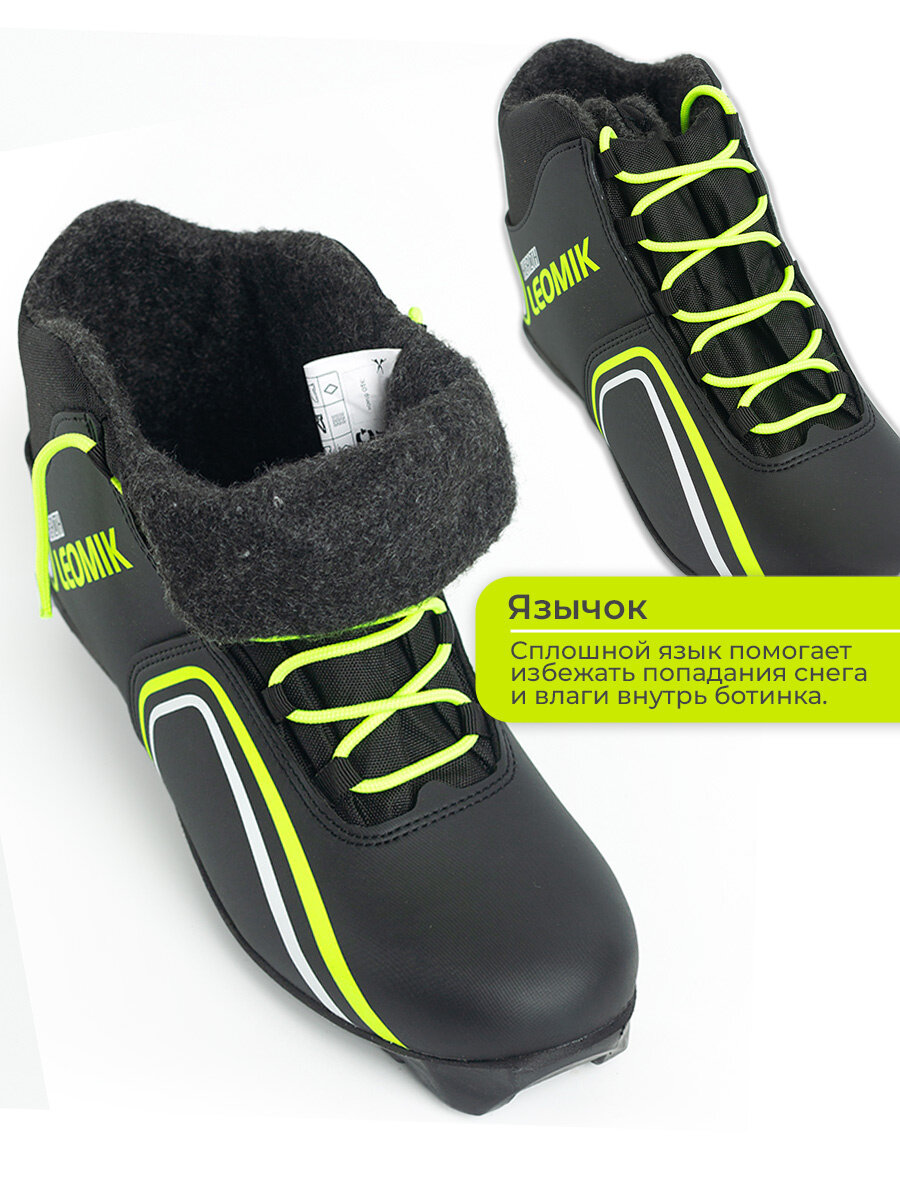 Ботинки лыжные детские Leomik Health (green) черные размер 35 для беговых прогулочных лыж крепление NNN