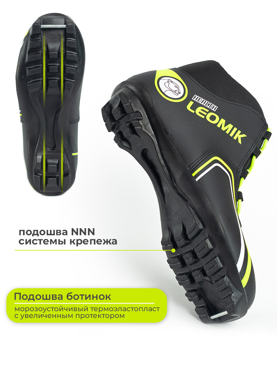 Ботинки лыжные Leomik Health (green) NNN, размер 42, черно-неоновые
