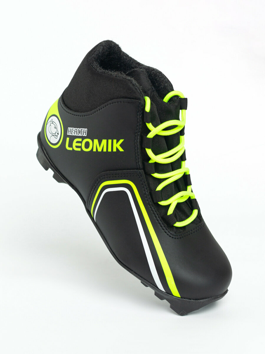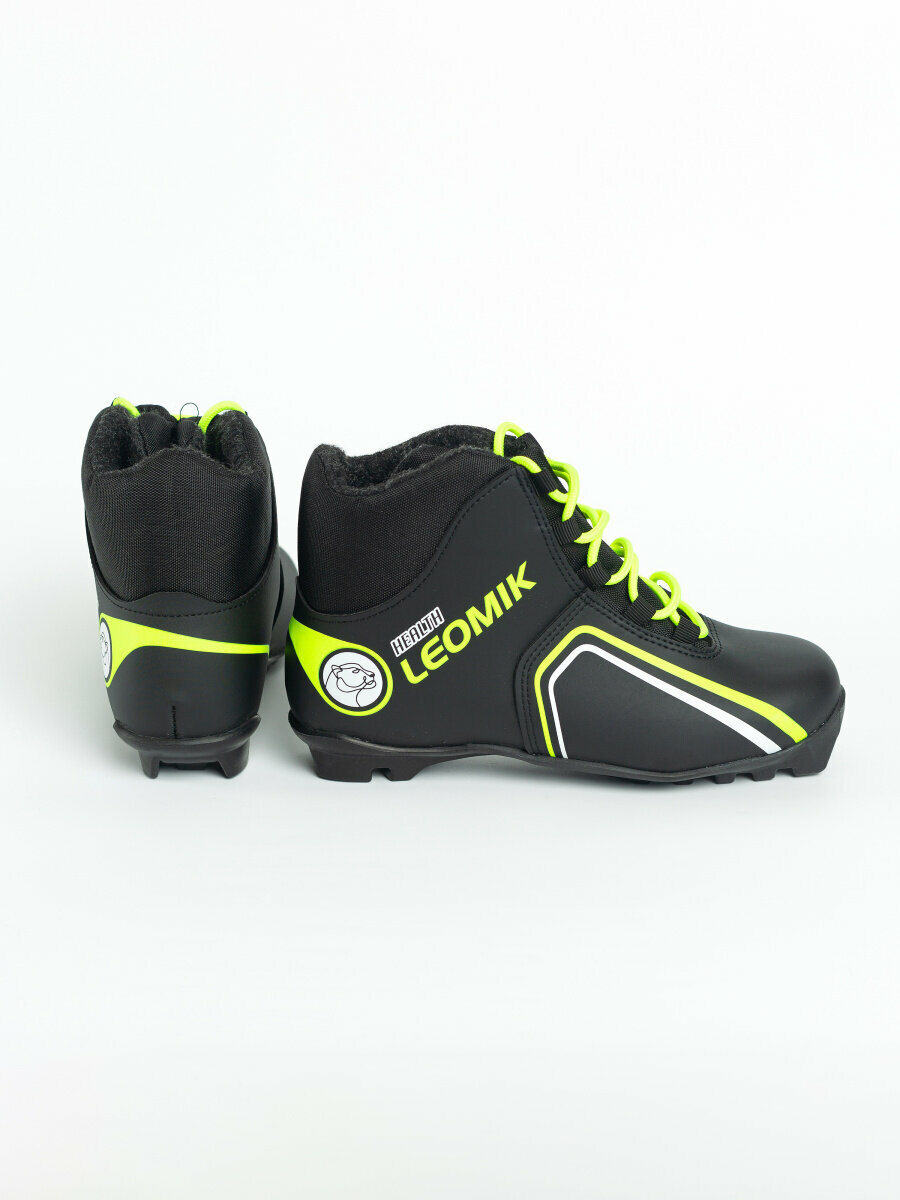 Ботинки лыжные детские Leomik Health (green) черные размер 34 для беговых прогулочных лыж крепление NNN