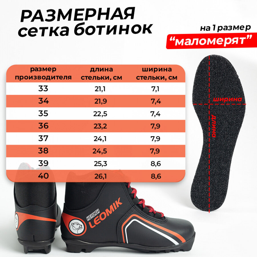 СохранитьБотинки лыжные детские Leomik Health (red) черные размер 34 для беговых прогулочных лыж крепление NNN интересное: